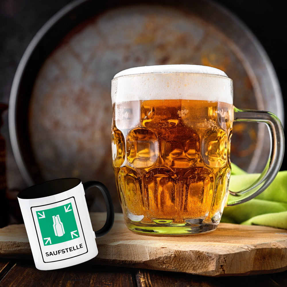 • 1x Saufstelle Kaffeebecher mit Bier Motiv und Spruch in der gewählten Ausführung