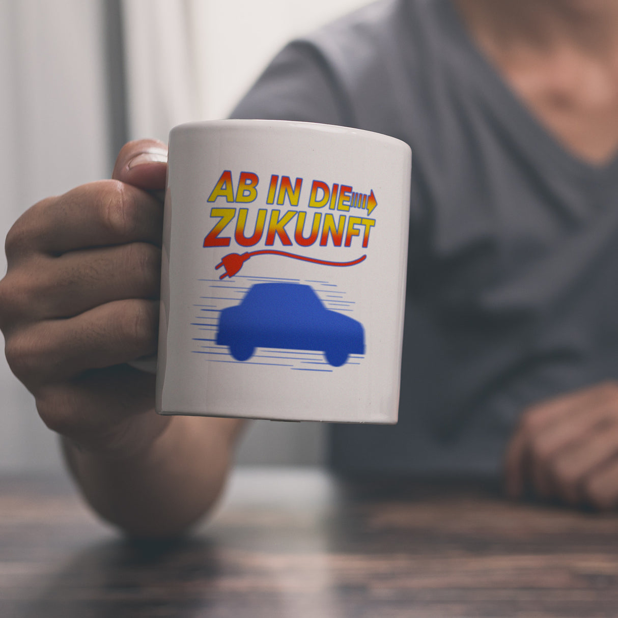 - 1x Ab in die Zukunft Elektroauto Kaffeetasse in der gewählten Ausführung