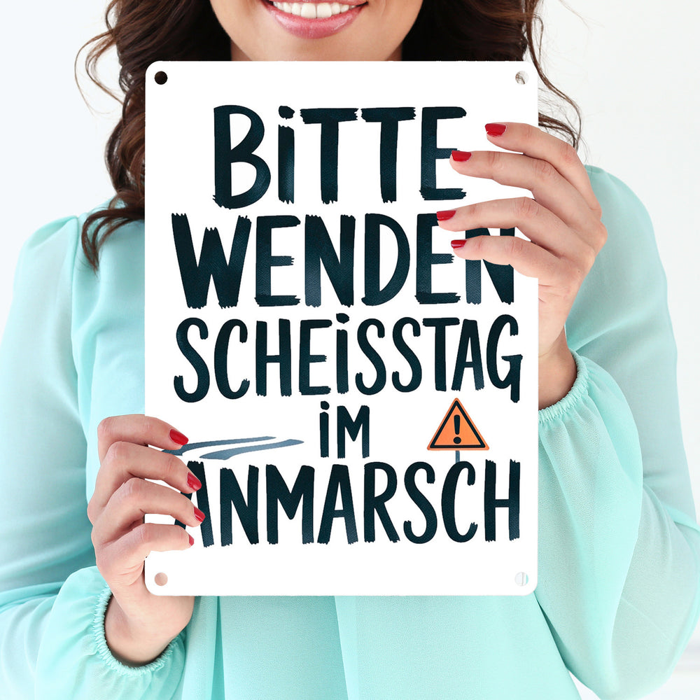 Bitte wenden, Scheisstag im Anmarsch Metallschild in 15x20 cm