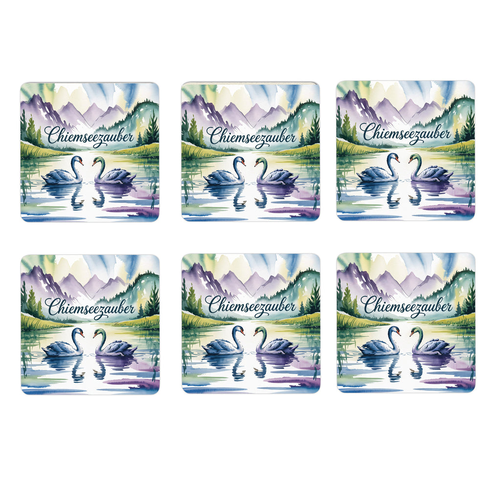Chiemgau Schwäne 6er Set Untersetzer aus Holz - Chiemseezauber