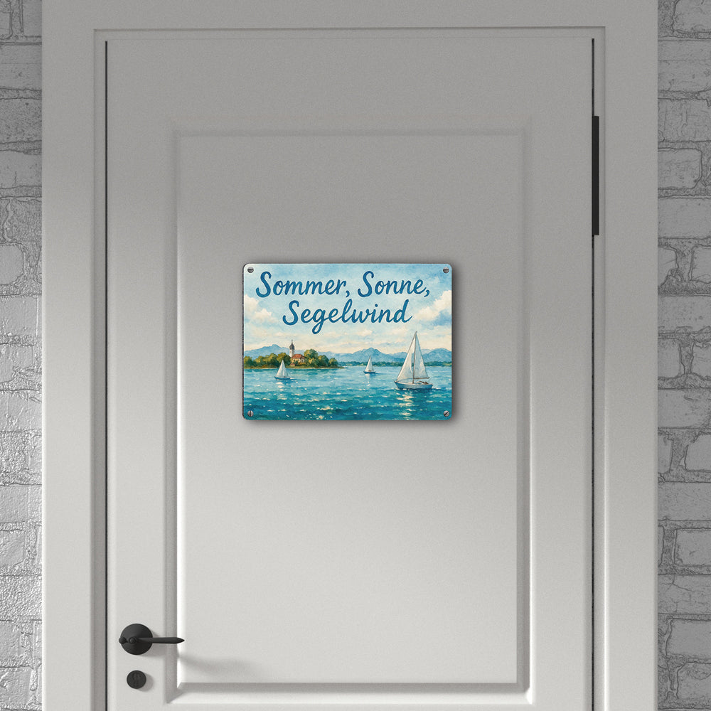 Chiemsee Sommer, Sonne, Segelwind Metallschild in 15x20 cm