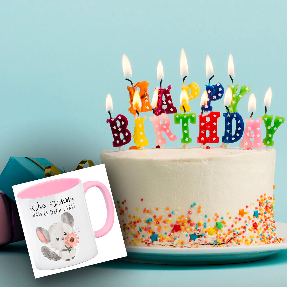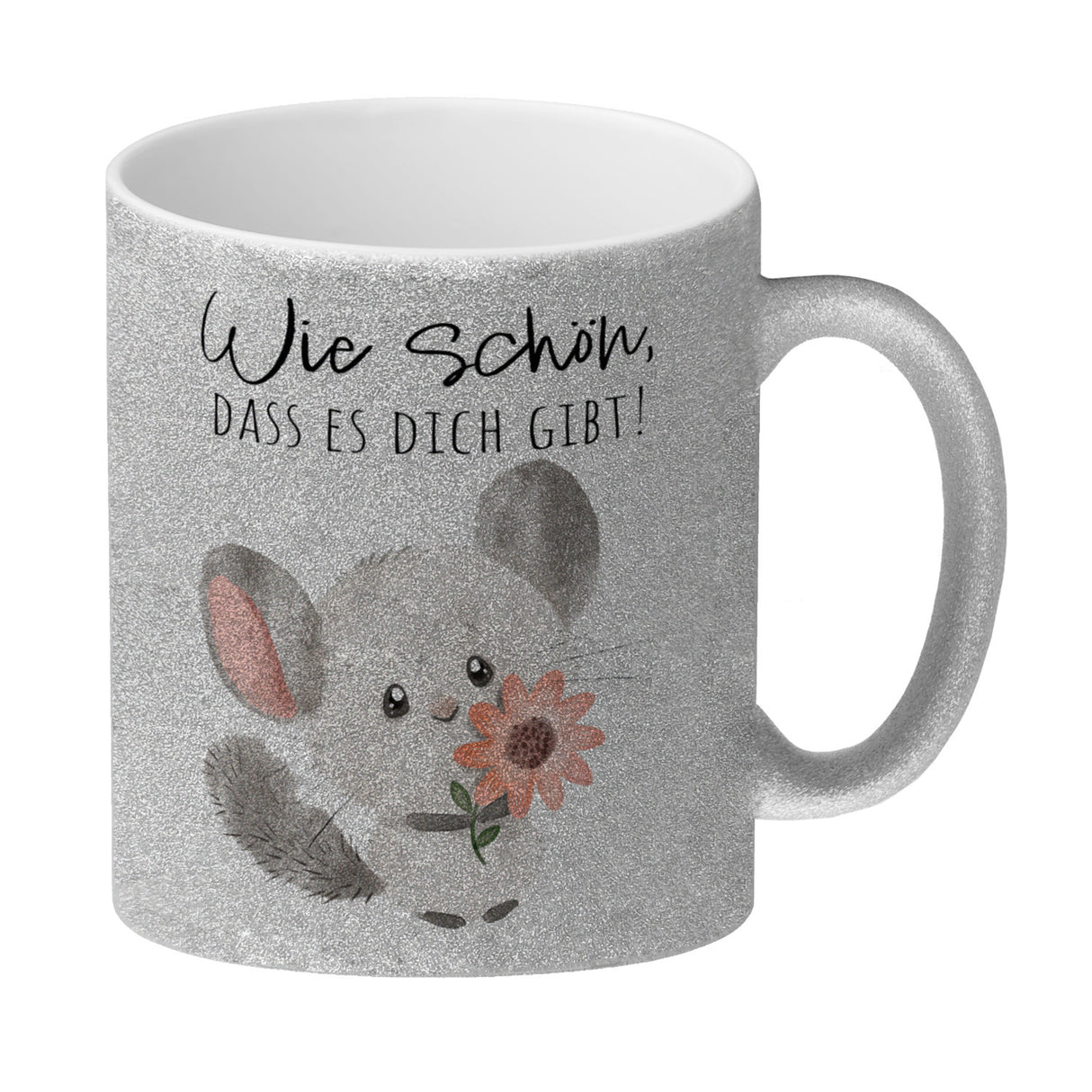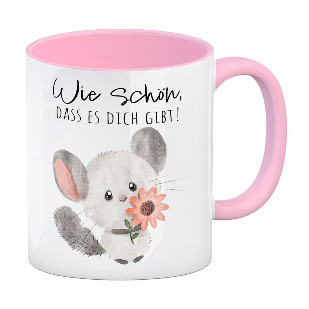 - 1x Chinchilla Kaffeebecher mit Spruch Wie schön dass es dich gibt in der gewählten Ausführung