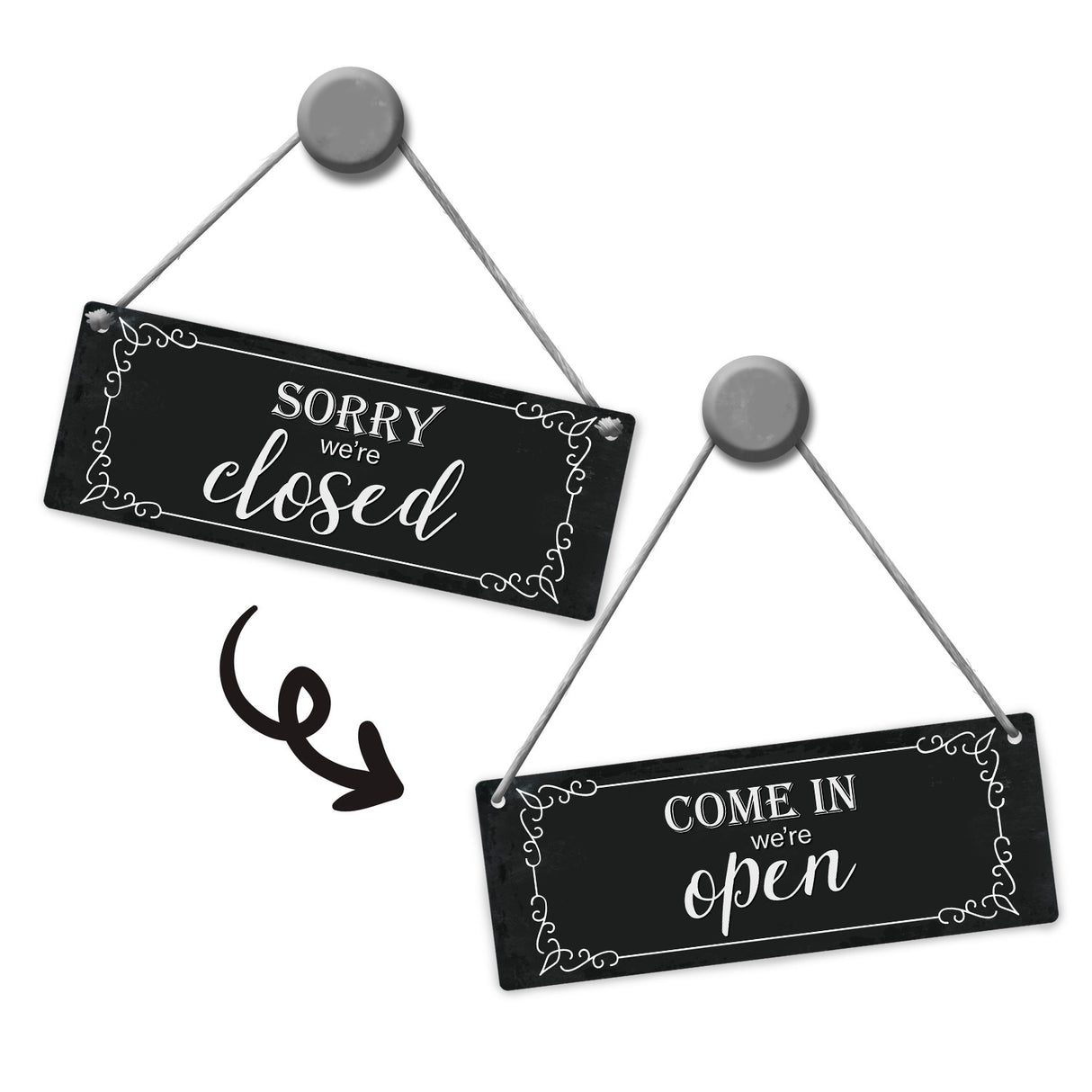 • Vorderseite: Come in we're open - Rückseite: Sorry we're closed