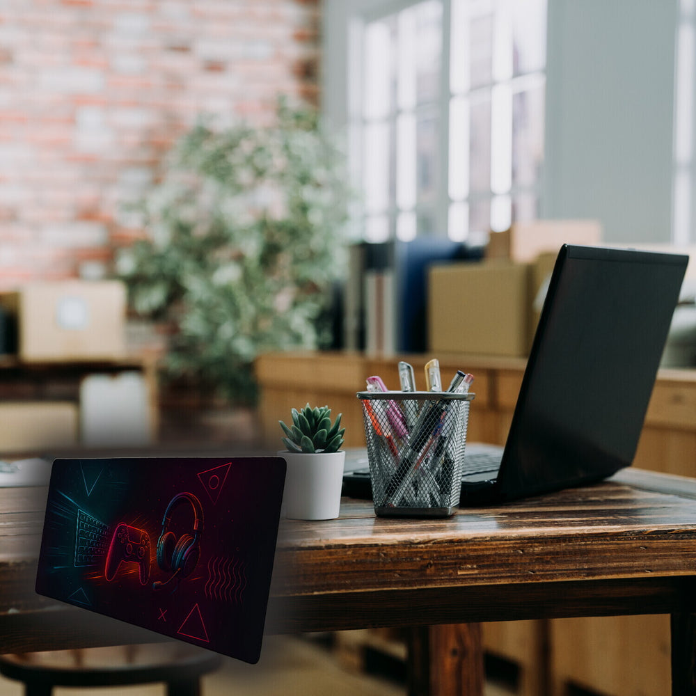 - Erlebe die Qualität und das detailverliebte Design dieser Schreibtischunterlage. Mit viel Liebe zum Detail gestaltet und bedruckt, ist sie mehr als nur ein Accessoire – sie ist ein Statement! Hol sie Dir jetzt und verwandle Deinen Schreibtisch in eine futuristische Gaming-Welt.
