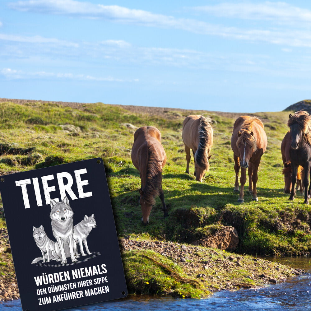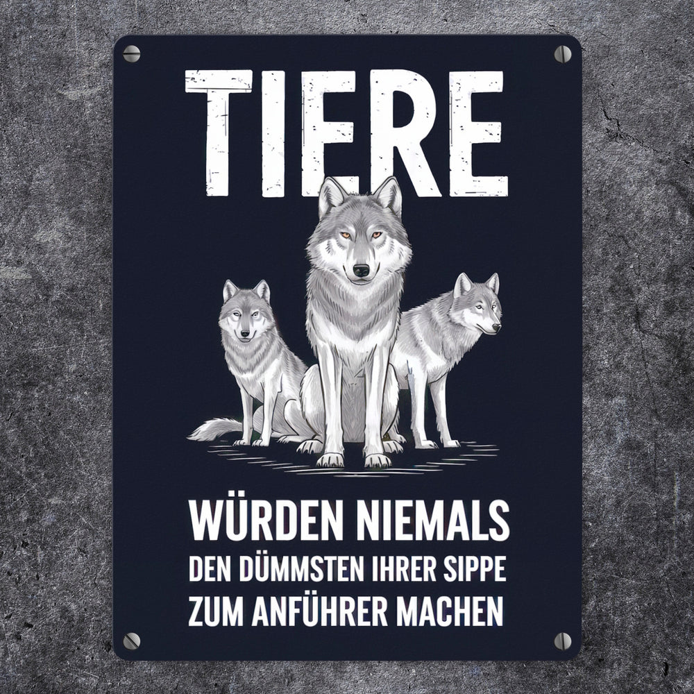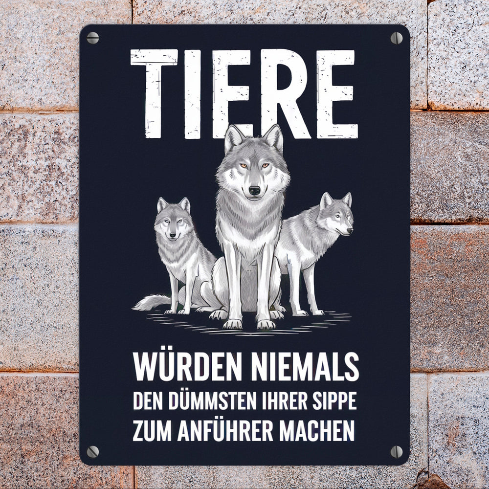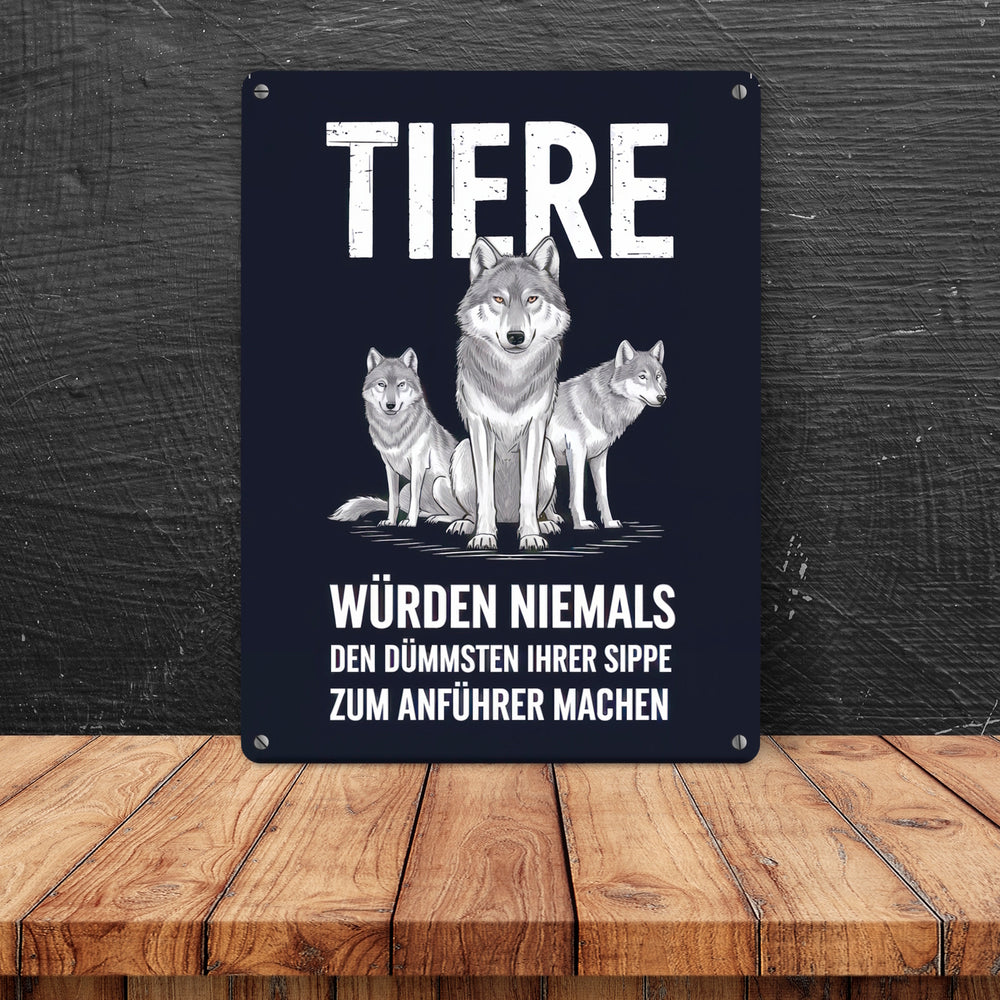 Drei Wölfe - Tiere wählen klug Metallschild in 15x20 cm - 15x20 cm ist auf Lager und wird versandt, sobald es wieder verfügbar ist