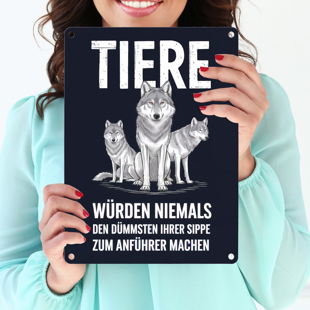 Drei Wölfe - Tiere wählen klug Metallschild in 15x20 cm