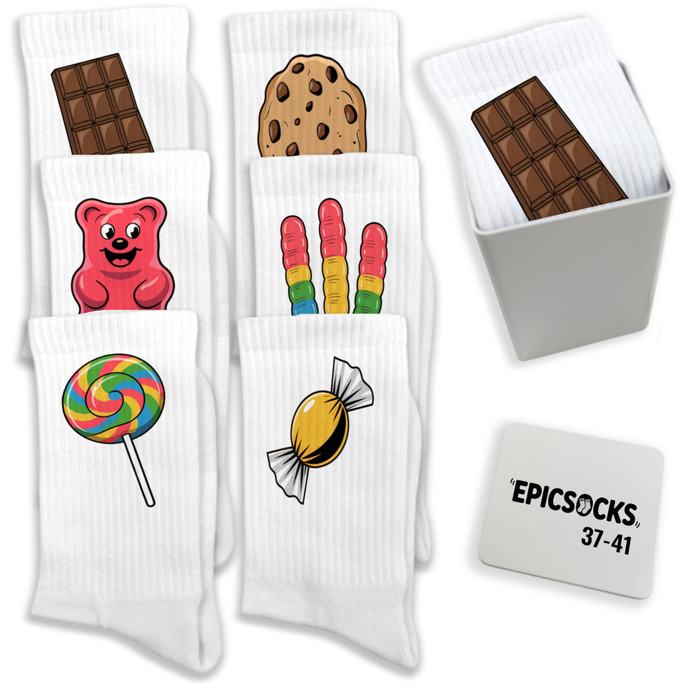 - Greife jetzt zu den epicsocks Candy Delight Socken und schenke dir selbst oder deinen Lieben ein Lächeln! Mit Liebe entworfen und in hochwertiger Qualität gedruckt, bieten diese Socken nicht nur Komfort, sondern auch ein modisches Statement. Gönn dir den süßesten Spaß für die Füße. Hol dir dein Set noch heute!