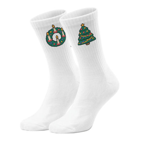 - Erleben Sie weihnachtliche Freude mit den epicsocks HollyHops! Dieses Paar Socken zeigt kreative, festliche Designs: auf einem Socken ein üppig geschmückter Tannenbaum mit bunten Kugeln, auf dem anderen ein leuchtender Adventskranz mit vier brennenden Kerzen. Diese lustigen Strümpfe bringen Farbe und Spaß in Ihren Alltag.