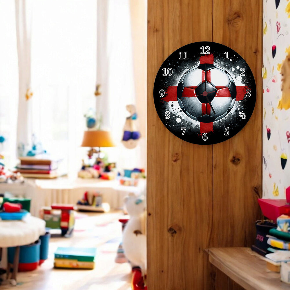 - Hol dir die EM 2024 nach Hause! Unsere coole Wanduhr zeigt die englische Flagge auf einem Fußball – das Heilige Georgskreuz auf weißem Hintergrund. Ideal für echte Fans von England und Fußball!