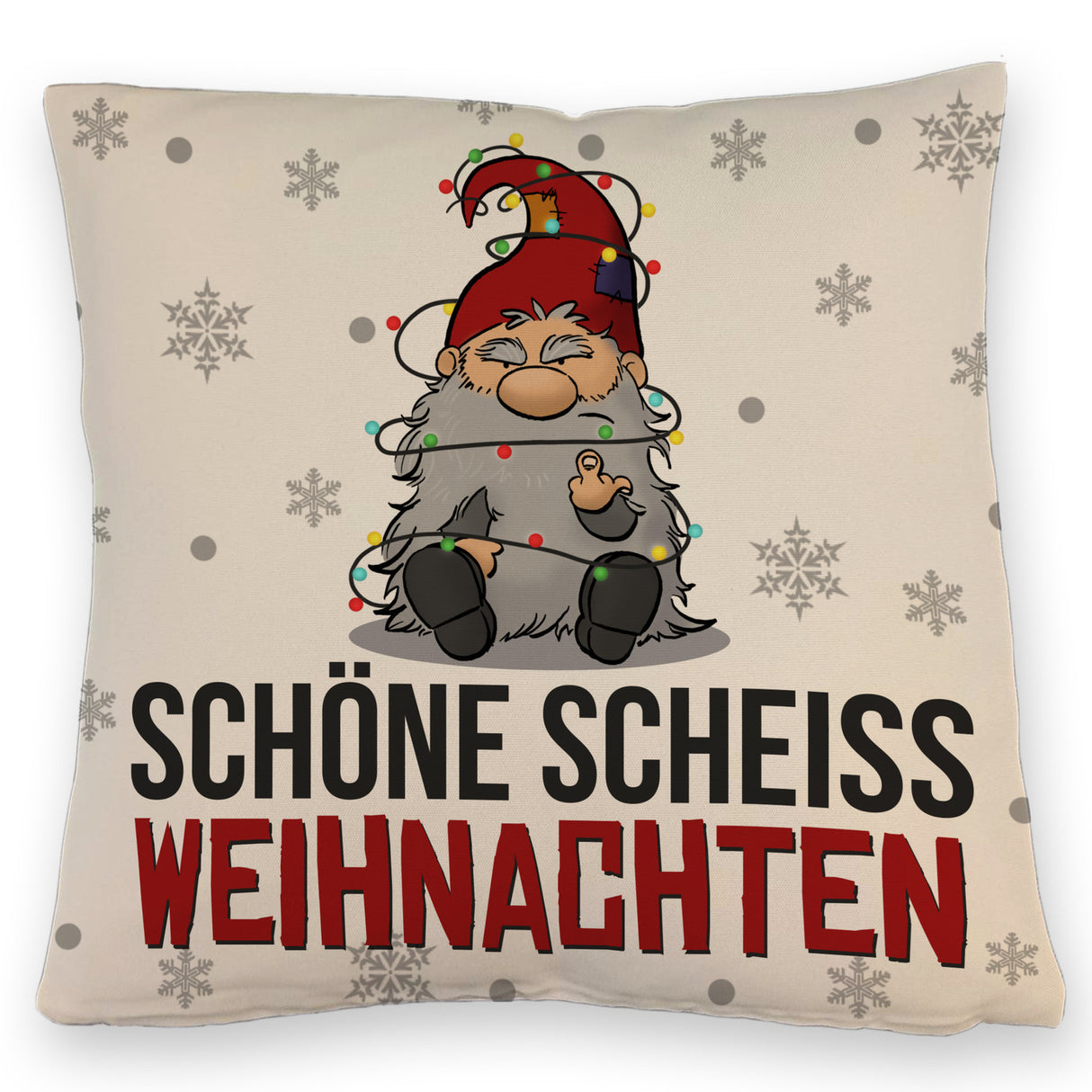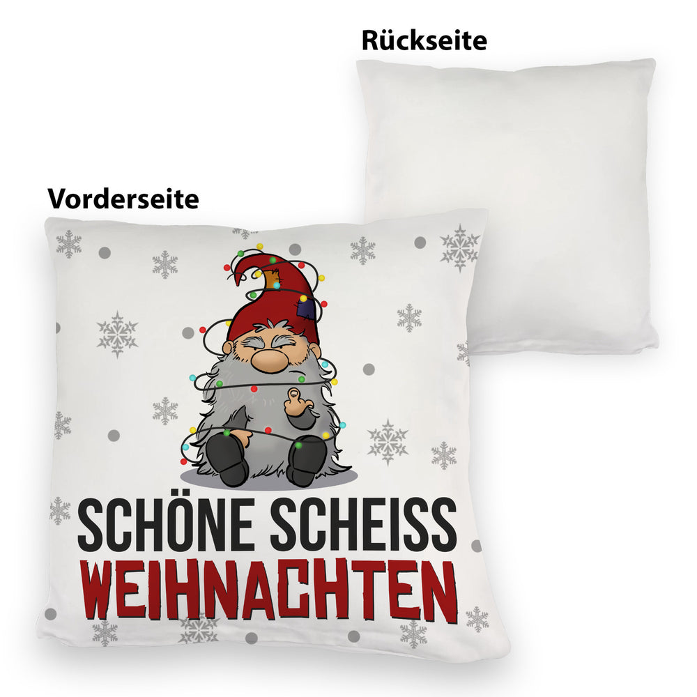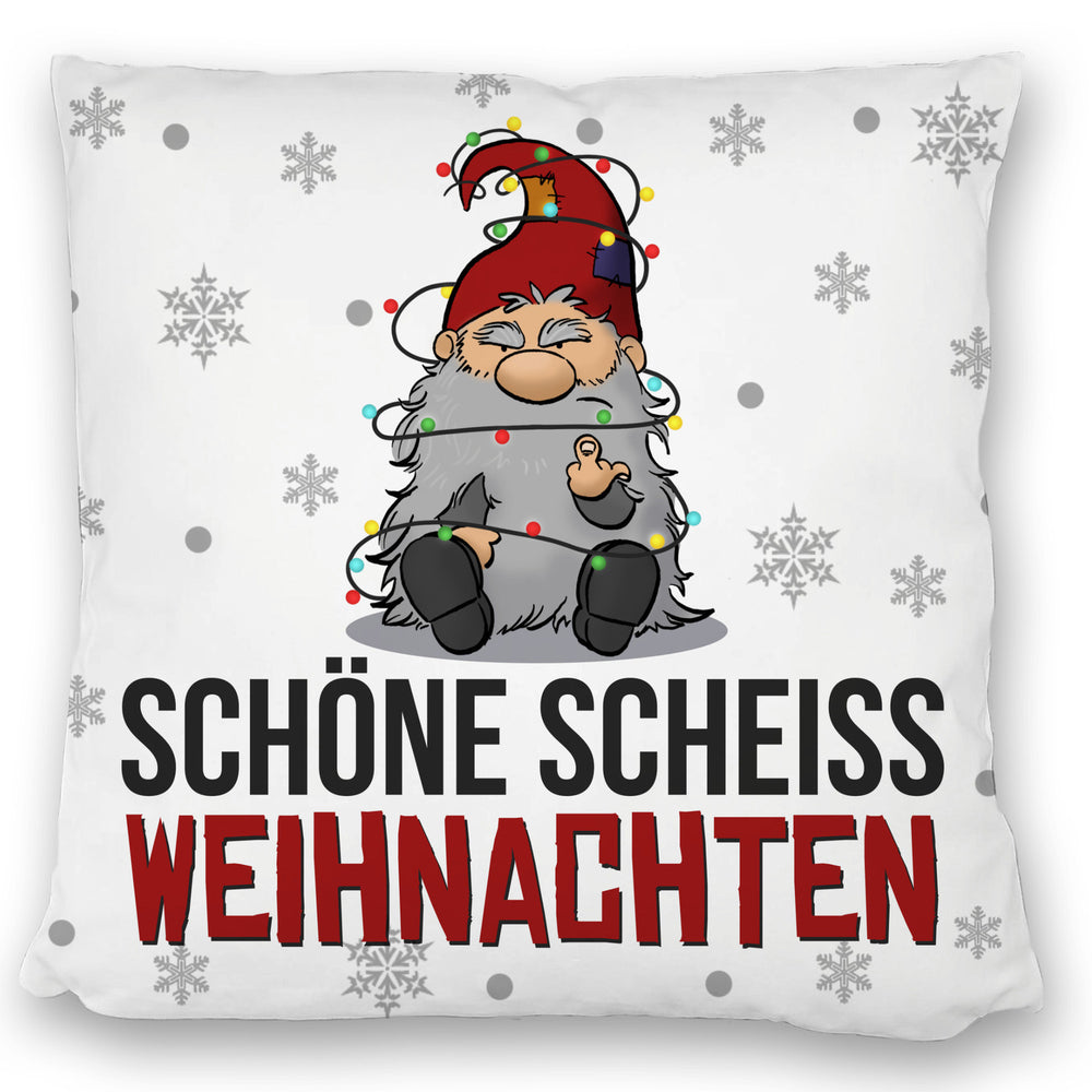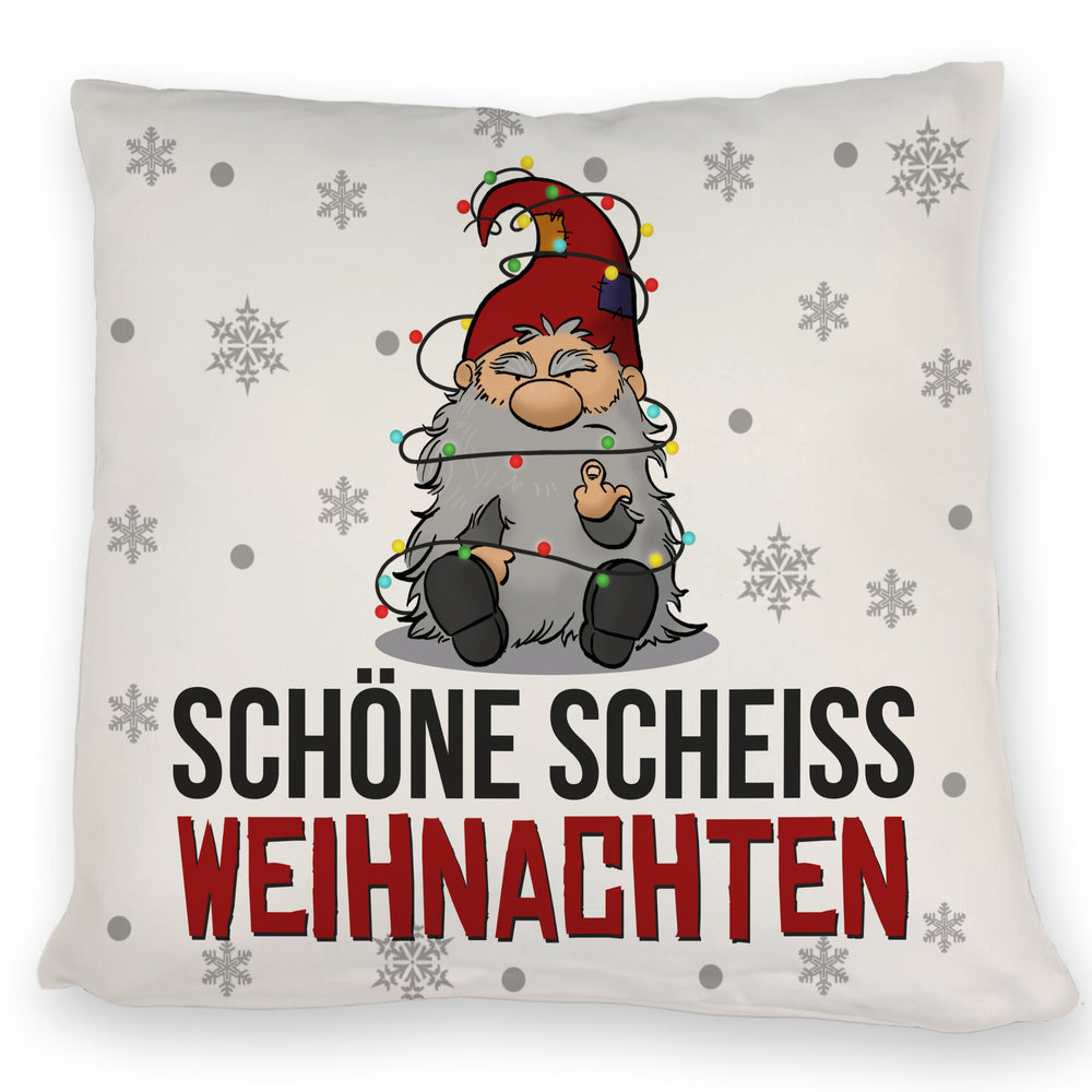 Grimmiger Wichtel Kissen mit Spruch Schöne scheiß Weihnachten