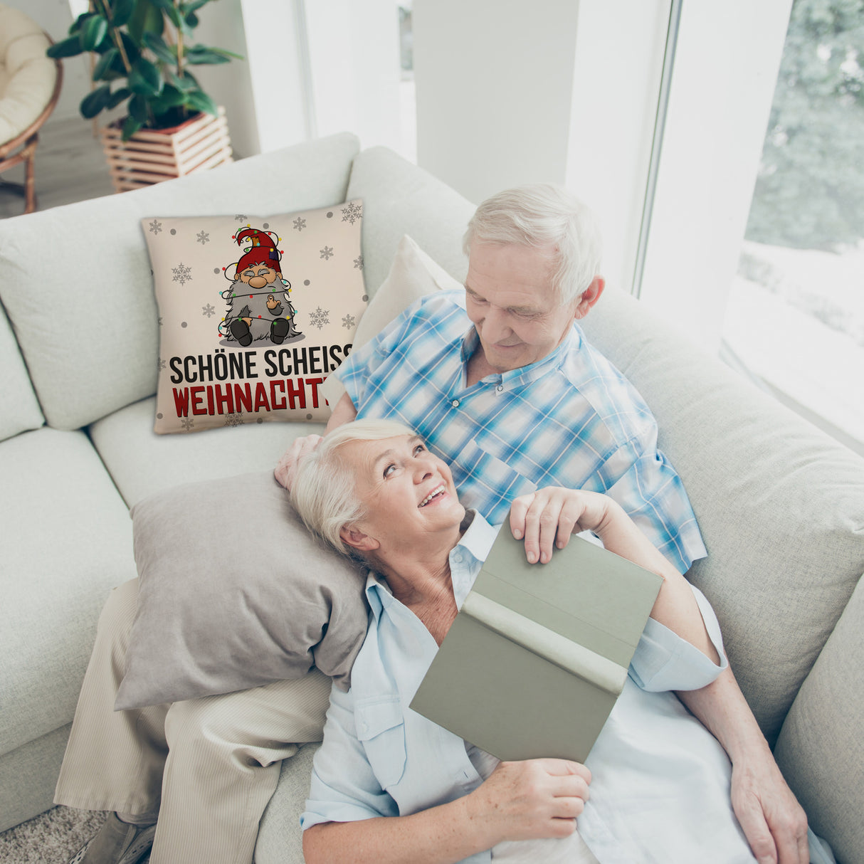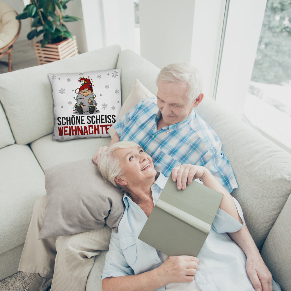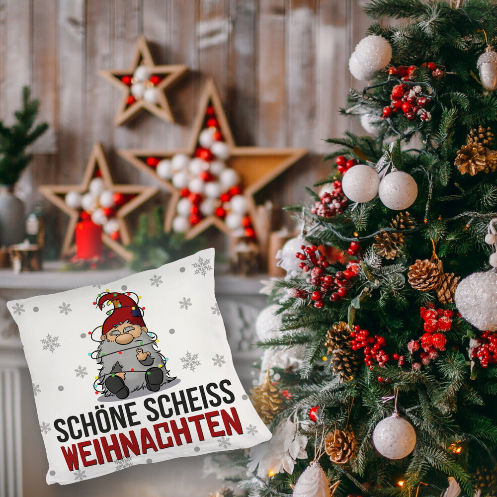 Grimmiger Wichtel Kissen mit Spruch Schöne scheiß Weihnachten