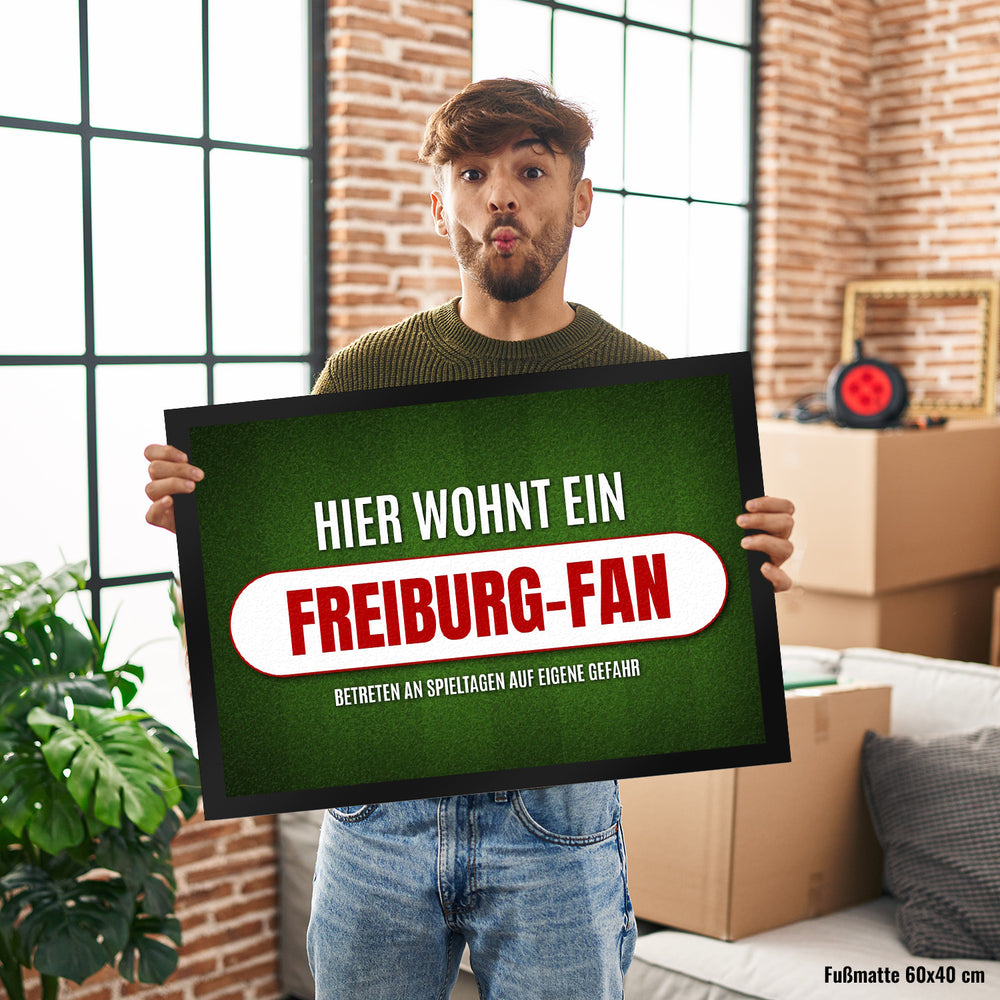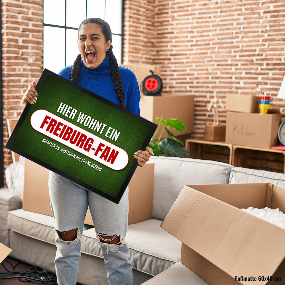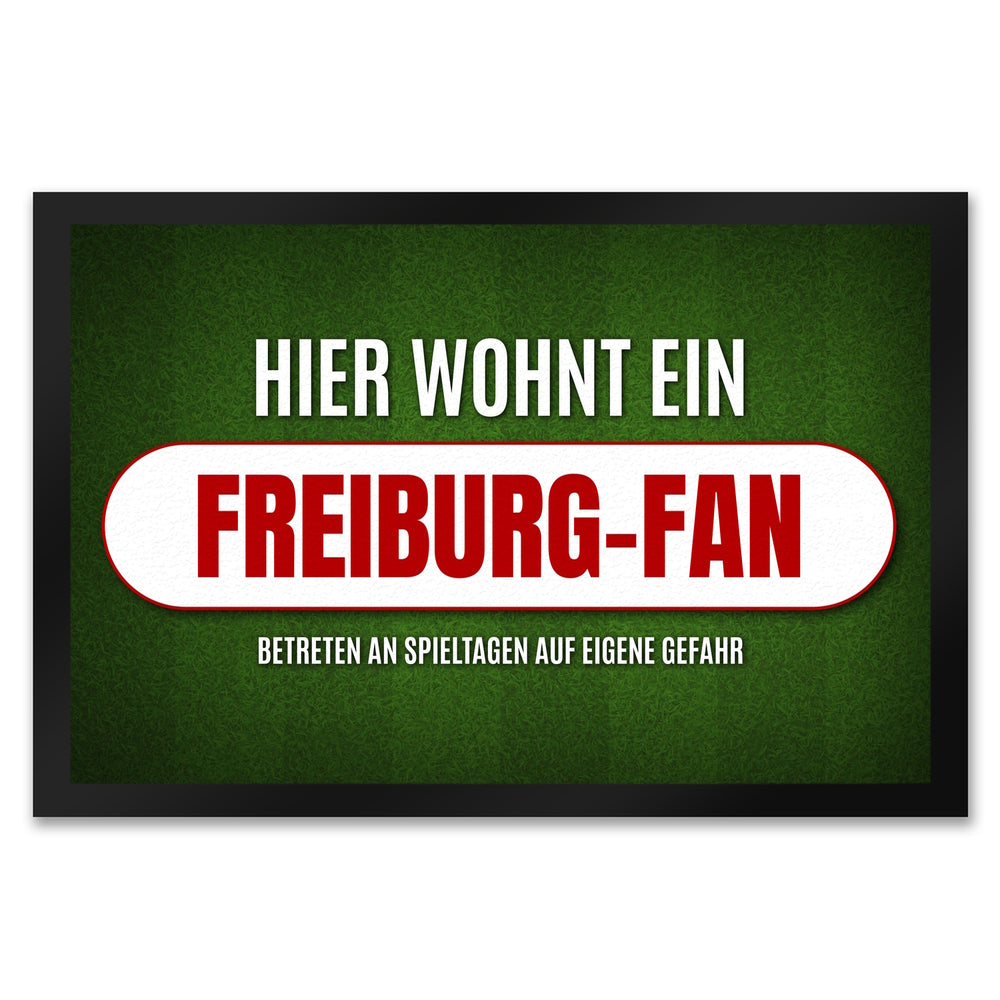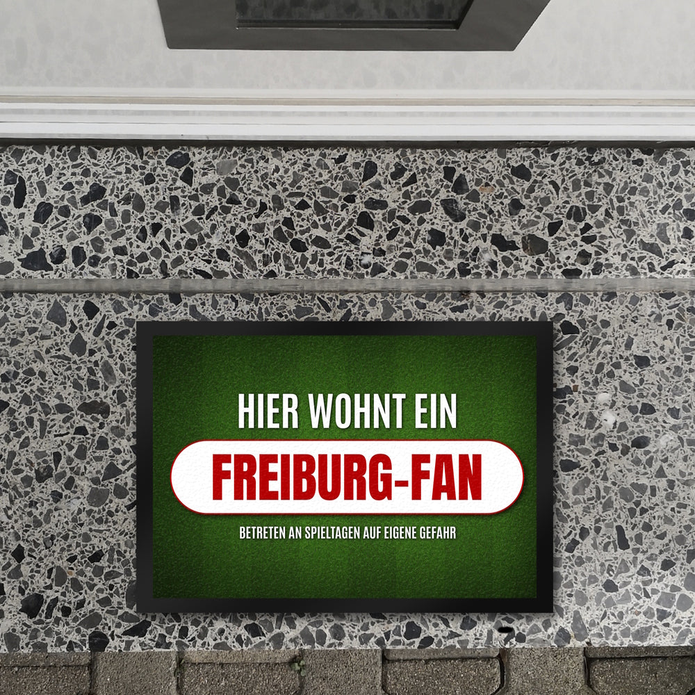 Hier wohnt ein Freiburg-Fan Fußmatte mit Rasen Motiv