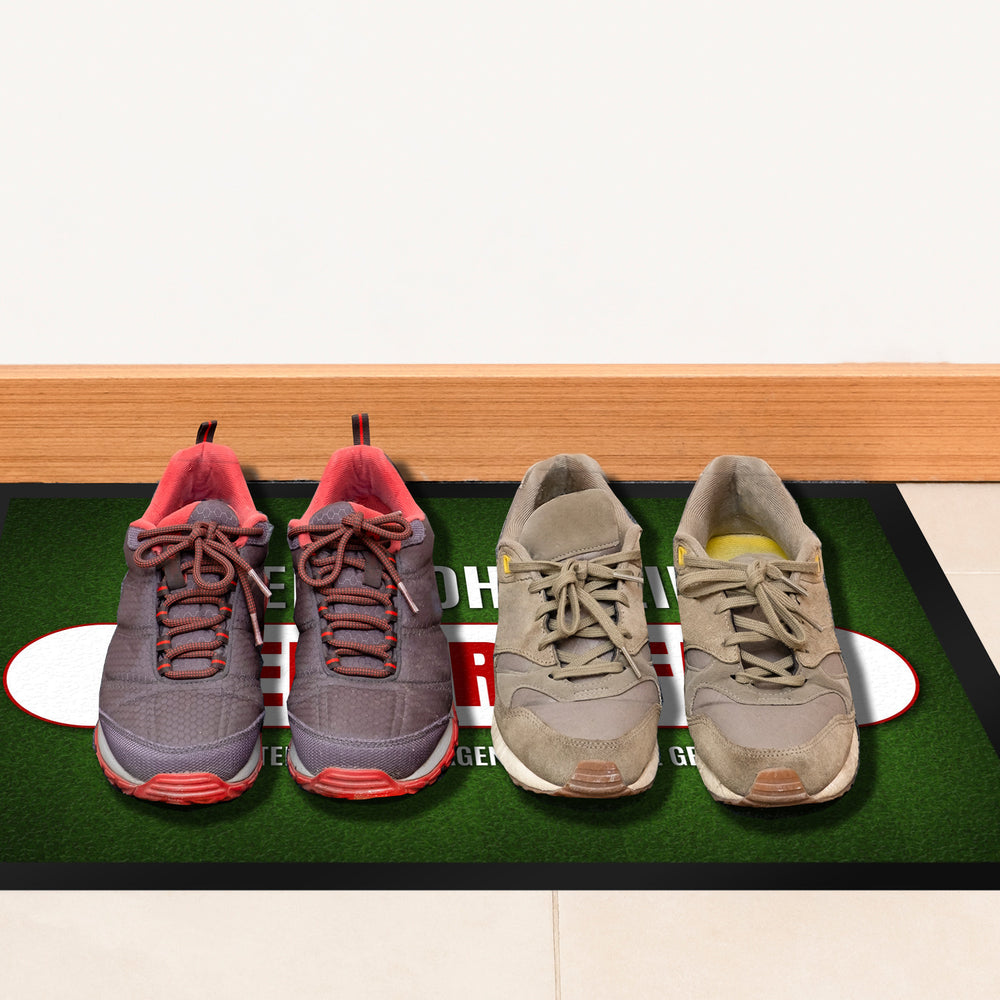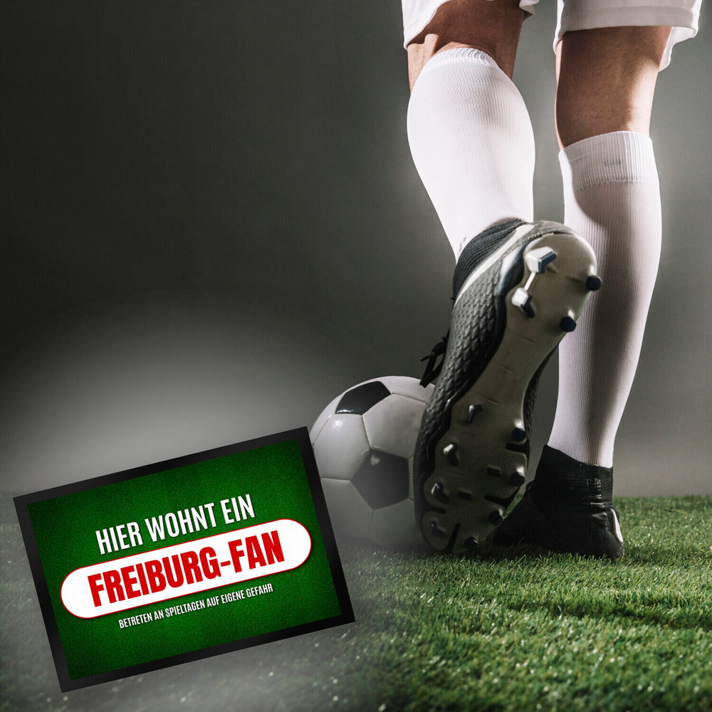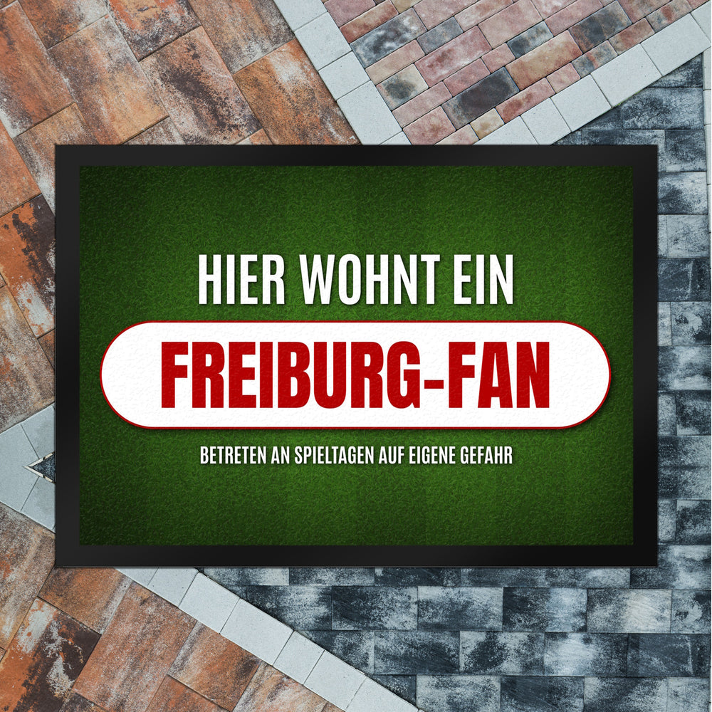 - 1x Hier wohnt ein Freiburg-Fan Fußmatte mit Rasen Motiv in der gewählten Größe