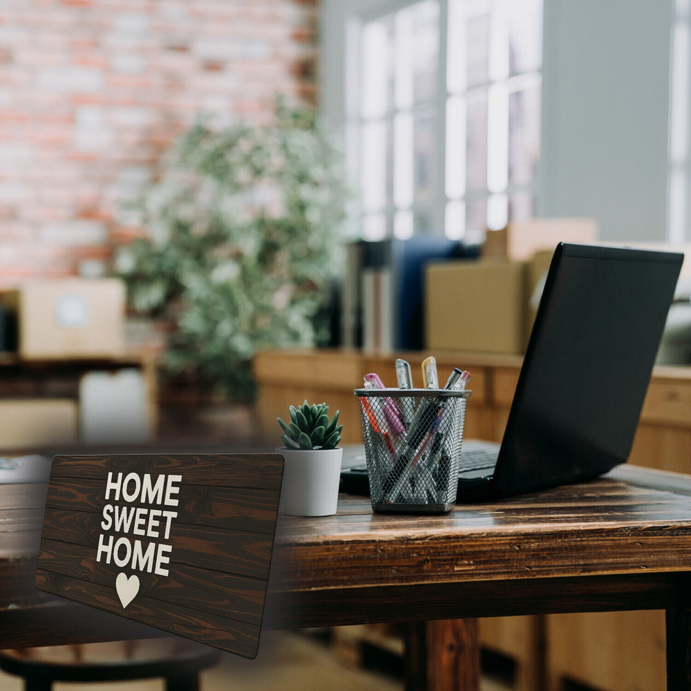 • 1x HOME SWEET HOME Schreibtischunterlage 69x31cm XXL Mauspad Holzoptik in der gewählten Größe