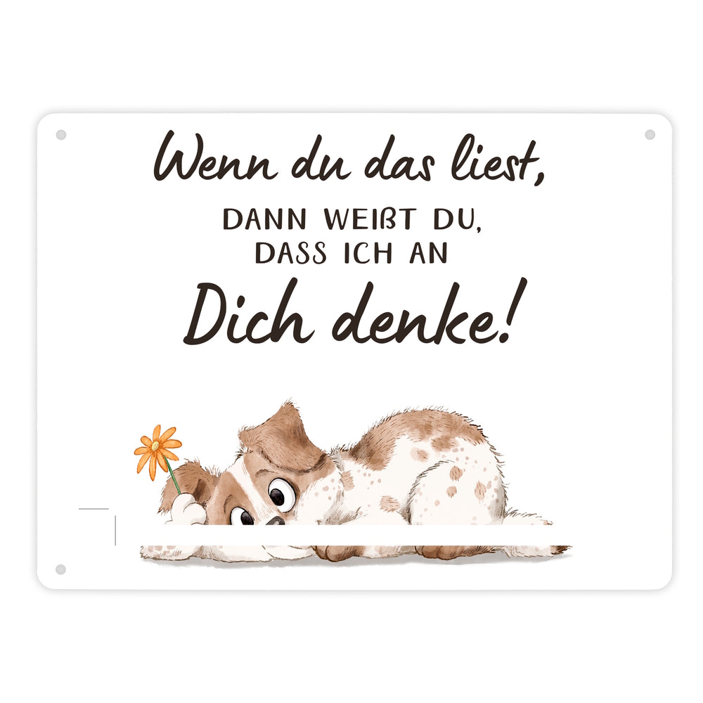 Hund Metallschild in 15x20 cm mit Spruch Ich denke an dich