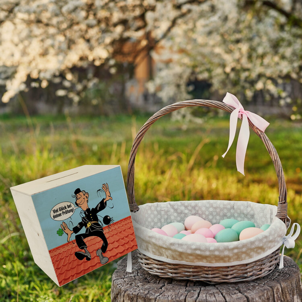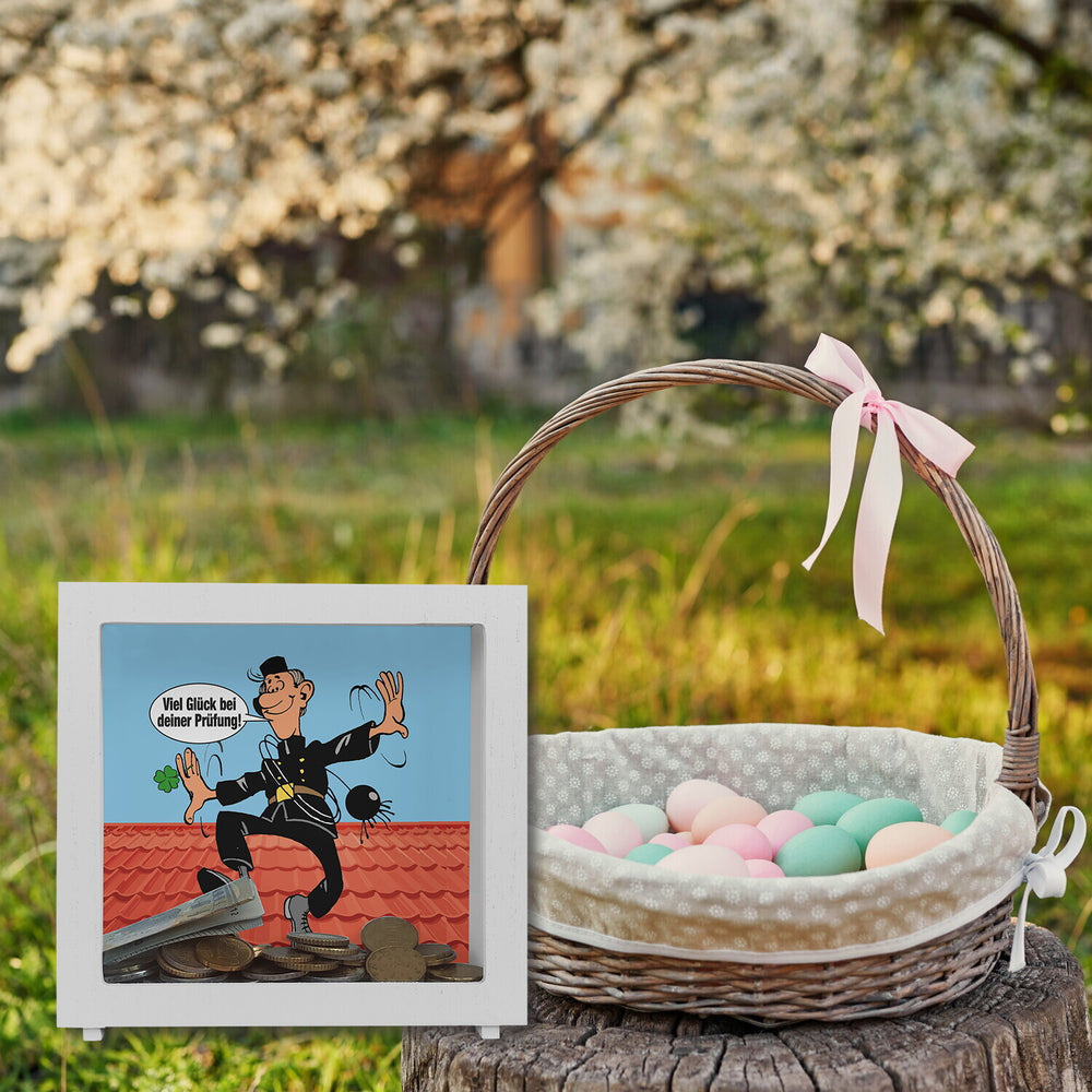 Entdecke die zauberhafte Welt des Glücks mit unserer Kaminfeger Spardose – ein echtes Highlight für Glückskinder und Prüfungshelden! Stell dir vor, wie ein niedlicher Kaminfeger auf einem Dach balanciert, ein vierblättriges Kleeblatt in der Hand, während der humorvolle Spruch „Viel Glück bei deiner Prüfung“ jedem Betrachter ein Schmunzeln ins Gesicht zaubert. Diese Spardose ist weit mehr als nur ein Münzbehälter – sie ist ein Symbol für Hoffnung, Glück und Erfolg.Verfügbar in drei bezaubernden Ausführungen: Wähle die schlichte Holzversion für einen natürlichen Look, die hochwertige ovale Keramikausgabe für Eleganz oder die exklusive Rahmenvariante mit Sichtfenster, die das perfekte Geldgeschenk bietet. Jede Spardose wird liebevoll in unserer deutschen Manufaktur gefertigt – Qualität, die man sehen und fühlen kann.Ob als motivierender Begleiter auf deinem Schreibtisch oder als Geschenk für all jene, die große Herausforderungen meistern müssen – diese Kaminefeger-Spardose bringt nicht nur glückliche Gedanken, sondern auch ein wenig Leichtigkeit in den Alltag. Greife zu und lass diese charmante Sparbüchse zum Glücksbringer für dich oder deine Liebsten werden – perfekt, um ein Lächeln zu verschenken und kleine Ersparnisse stilvoll wachsen zu lassen!