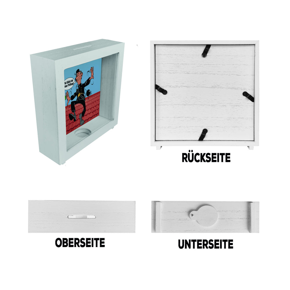 • Erhältlich in drei unterschiedlichen Varianten: Als schlichte Holzspardose, als hochwertige ovale Keramik-Version oder als exklusive Rahmen-Variante aus Holz mit Sichtfenster – perfekt für Geldgeschenke. Mit Sorgfalt bedruckt in unserer Spardosen-Manufaktur in Deutschland.