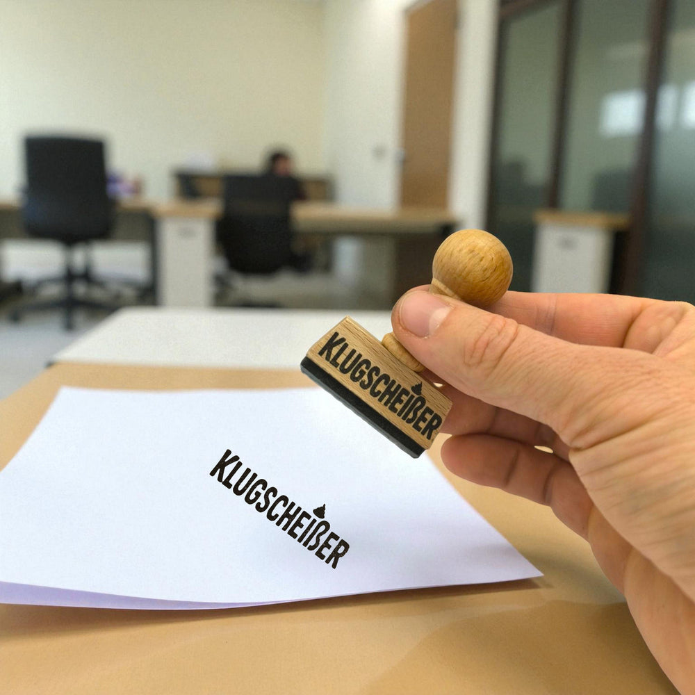 Verleihen Sie Ihrem Büroalltag Humor mit dem Klugscheißer-Holzstempel! Perfekt, um Kollegen charmant zu necken. Ein Must-have-Bürogadget, das jede Schublade aufpeppt! Material: Holz