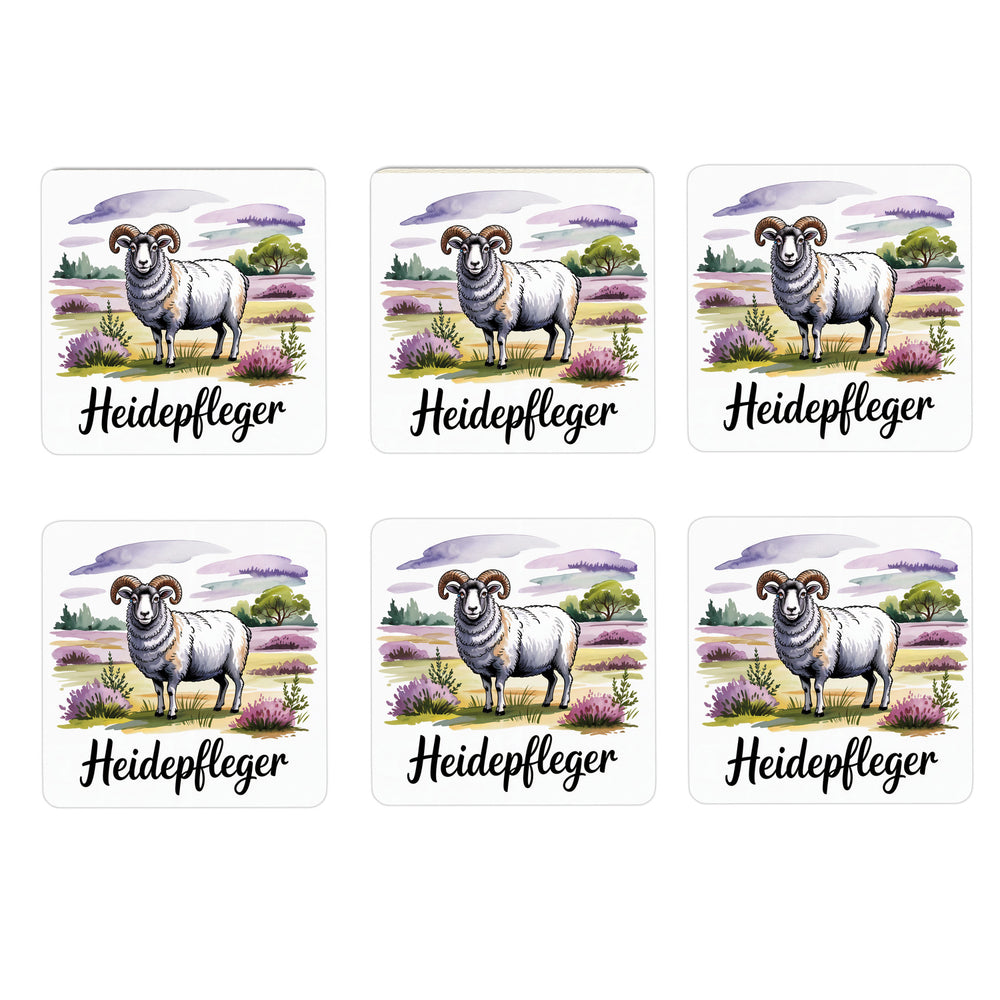 Lüneburger Heide Heidschnucke 6er Set Untersetzer aus Holz - Heidepfleger