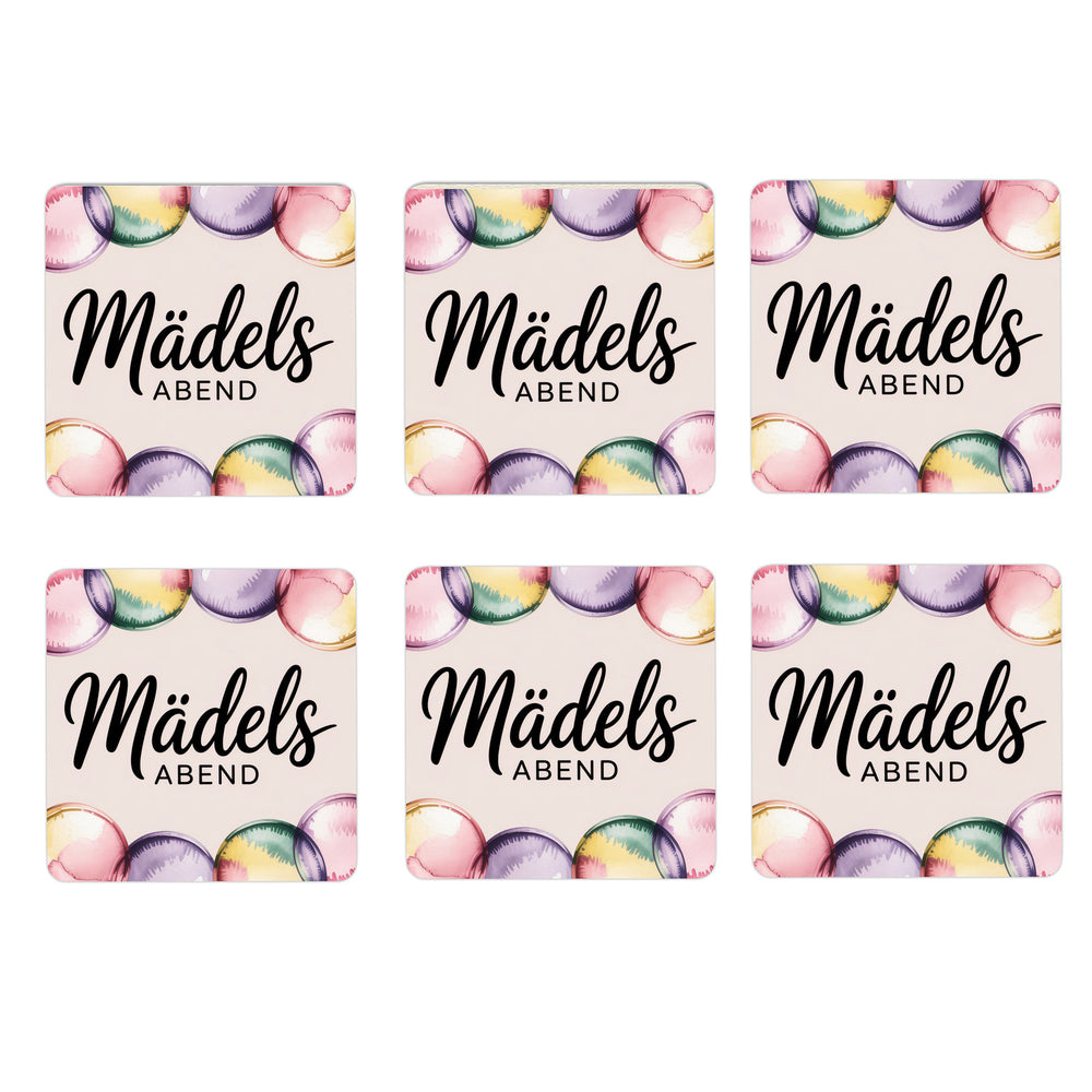 Mädelsabend Pastell 6er Set Untersetzer aus Holz