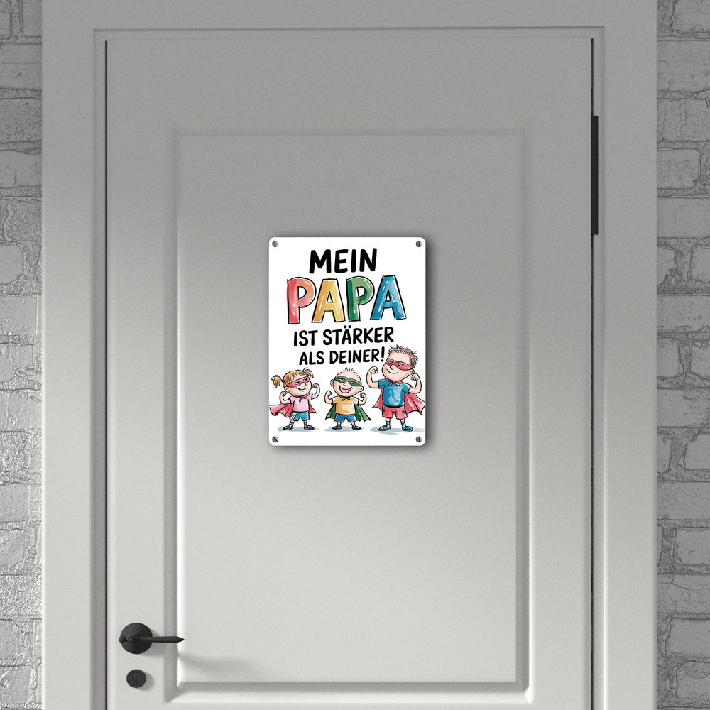 Mein Papa ist der stärkste Superheld Metallschild in 15x20 cm