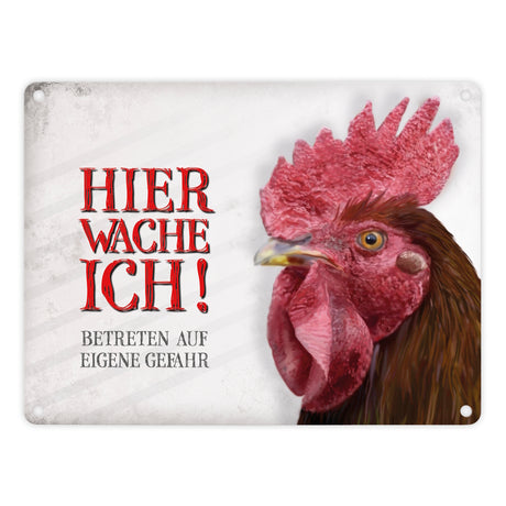 Metallschild mit Hahn Motiv und Spruch: Betreten auf eigene Gefahr ...