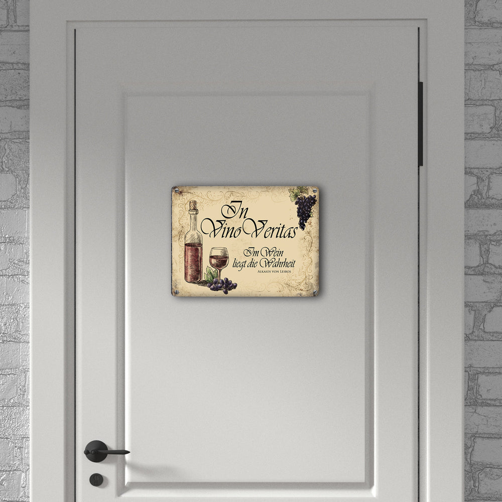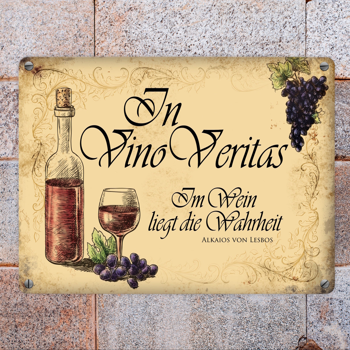 • Lieferumfang: 1x Metallschild mit Wein Motiv und Spruch: In Vino Vertias