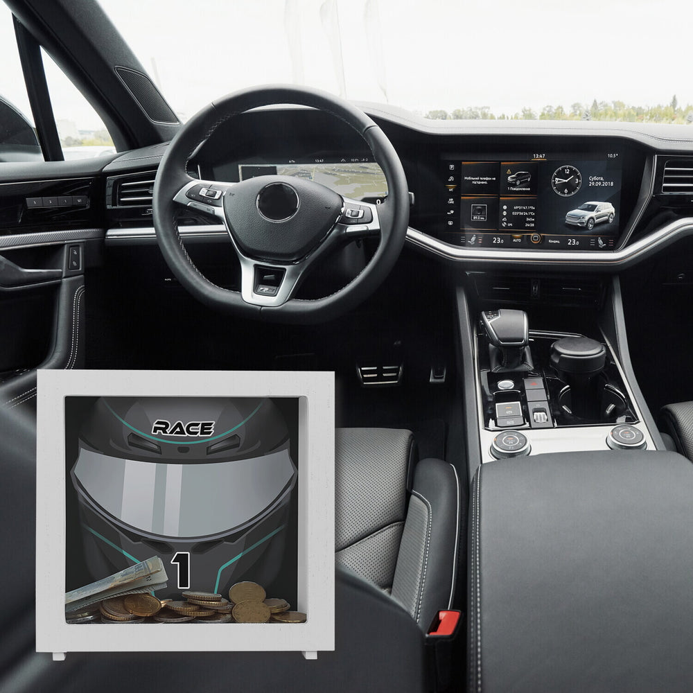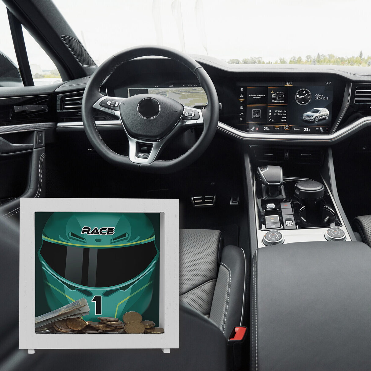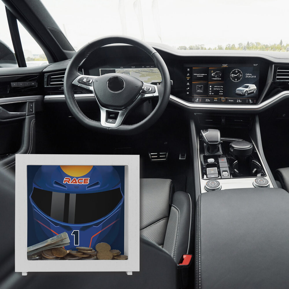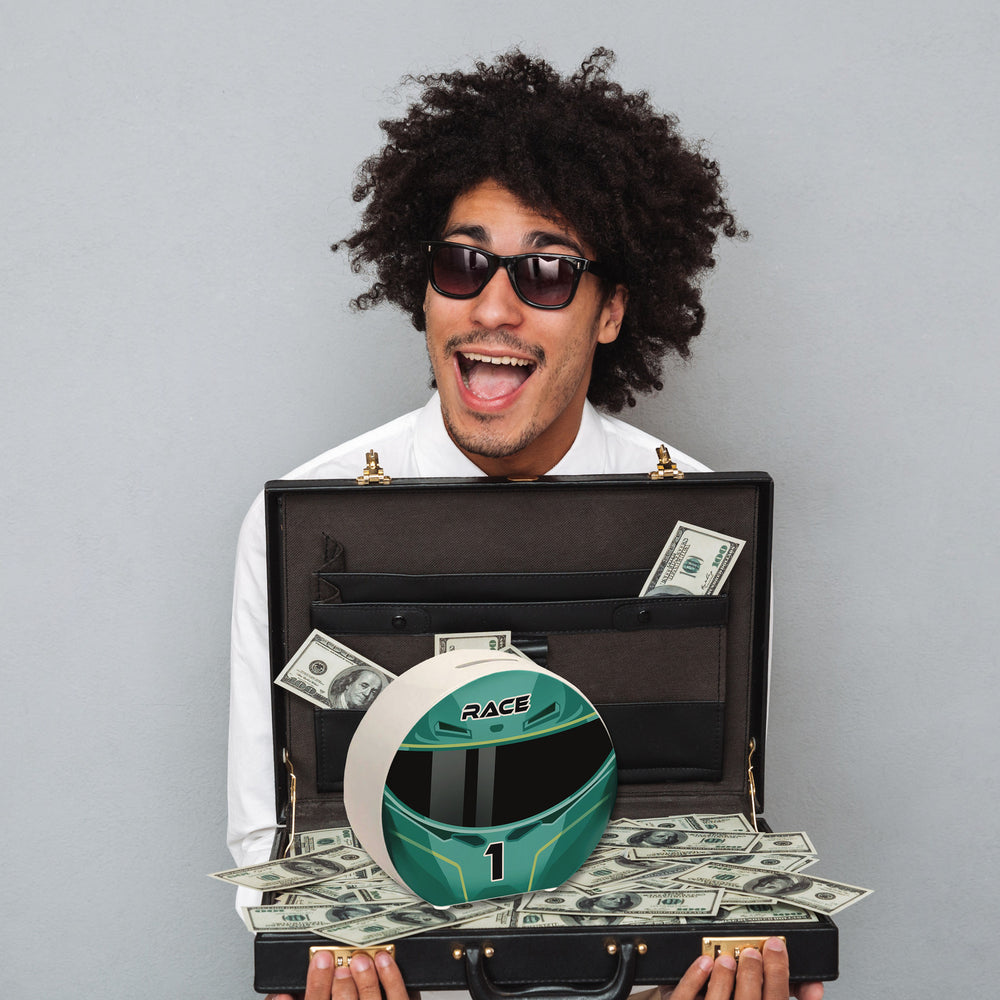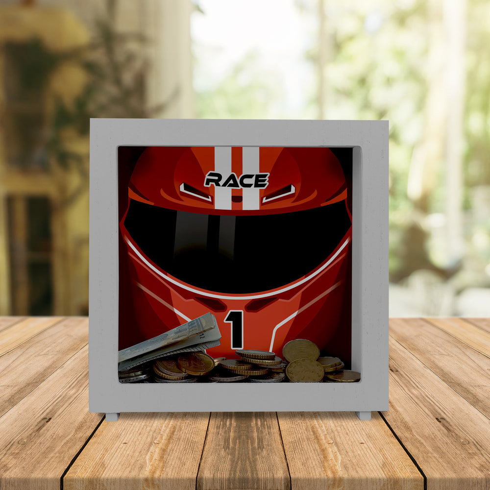 • 1x Motorsport-Helm Spardose in der gewählten Ausführung
