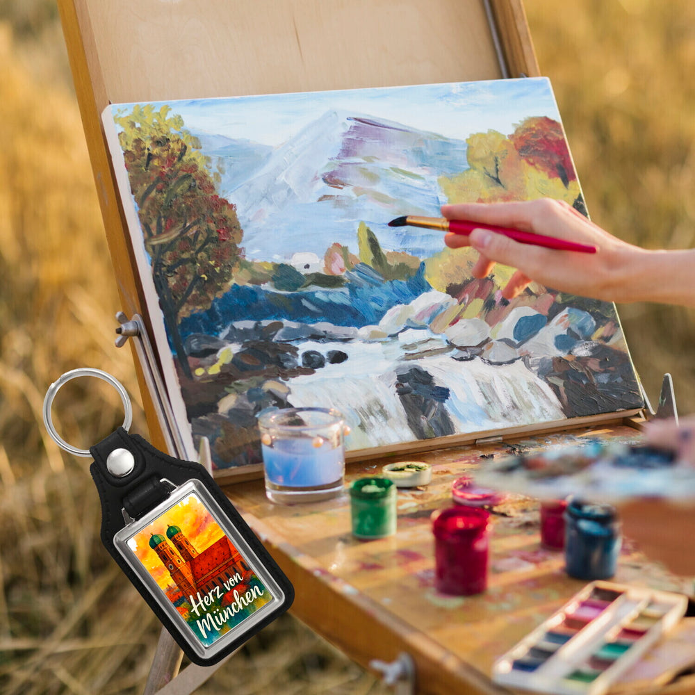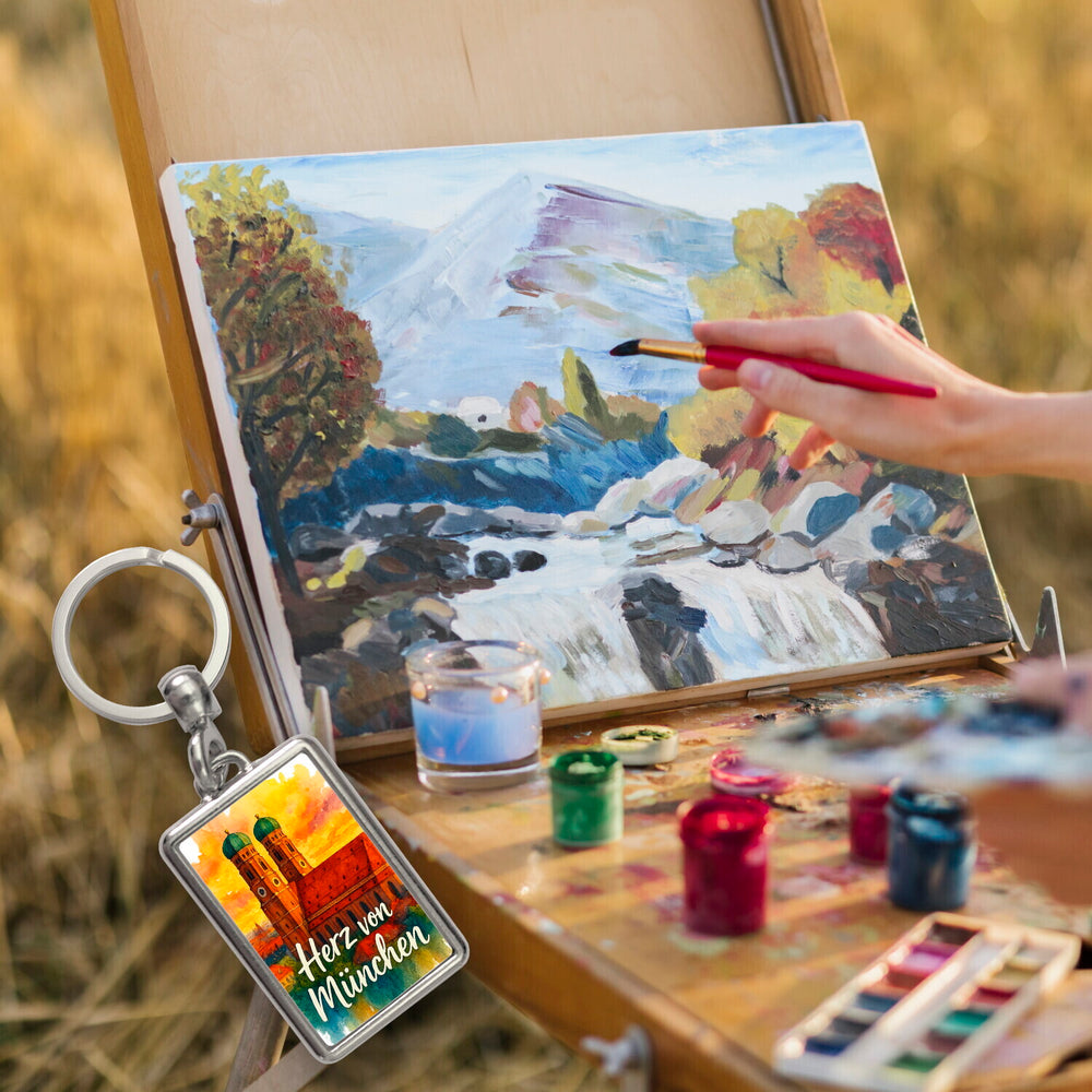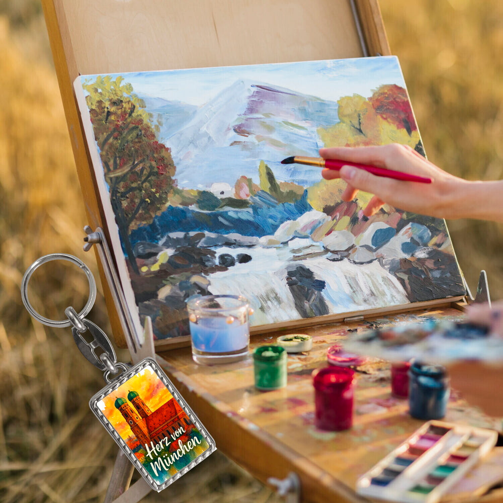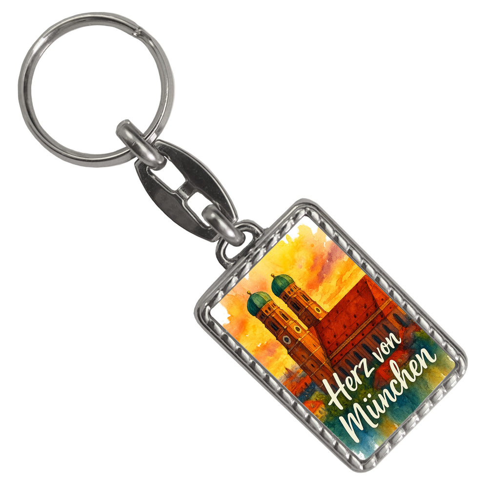 - Der Münchner Frauenkirche Schlüsselanhänger ist ein farbenfrohes Kunstwerk im Mini-Format. Es zeigt die berühmte Kirche in einem Aquarellgemälde bei dramatischem Sonnenuntergang. Die grünen Türme und das rote Dach verleihen dem Anhänger einen unverwechselbaren Charme. Eingefangen in warmen Tönen versprüht das Motiv einen romantischen Zauber!