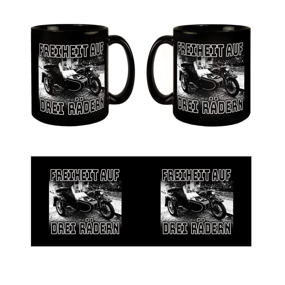 • Lieferumfang: 1x Oldtimermotorrad mit Beiwagen Tasse mit Spruch: Freiheit auf drei Rädern
