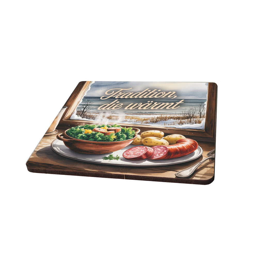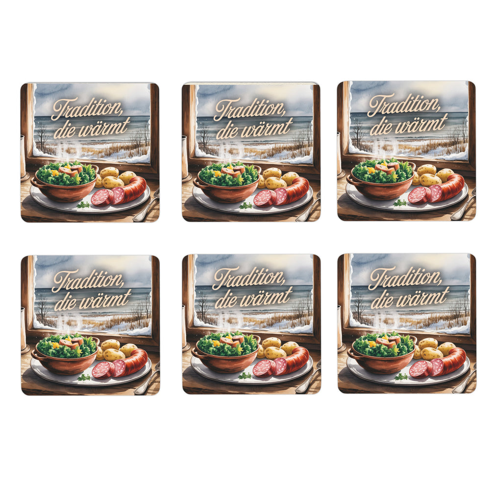Ostsee Grünkohl mit Pinkel 6er Set Untersetzer aus Holz - Tradition, die wärmt