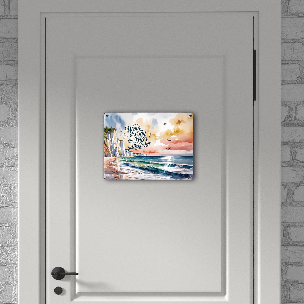 Ostsee Steilküste Rügen Metallschild in 15x20 cm - Tag ans Meer zurückkehrt