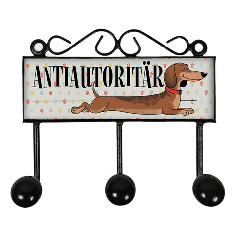 Dackel Kleiderhaken Leiste mit 3 Haken mit Spruch Antiautoritär