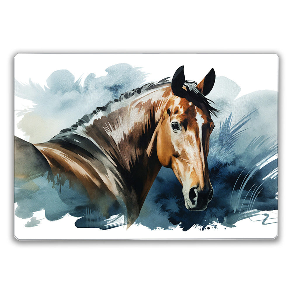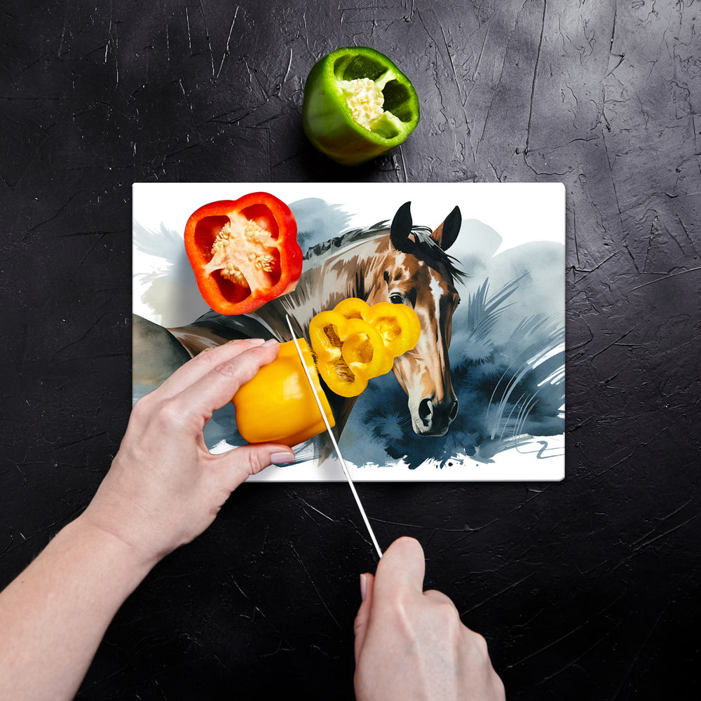 Pferdekopf Aquarell Schneidebrett aus Glas für Pferdefans