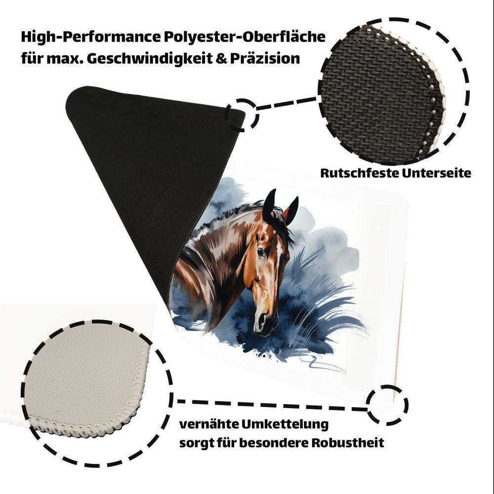 • 1x Pferdekopf Aquarell Schreibtischunterlage 69x31cm XXL Mauspad für Pferdefans in der gewählten Größe