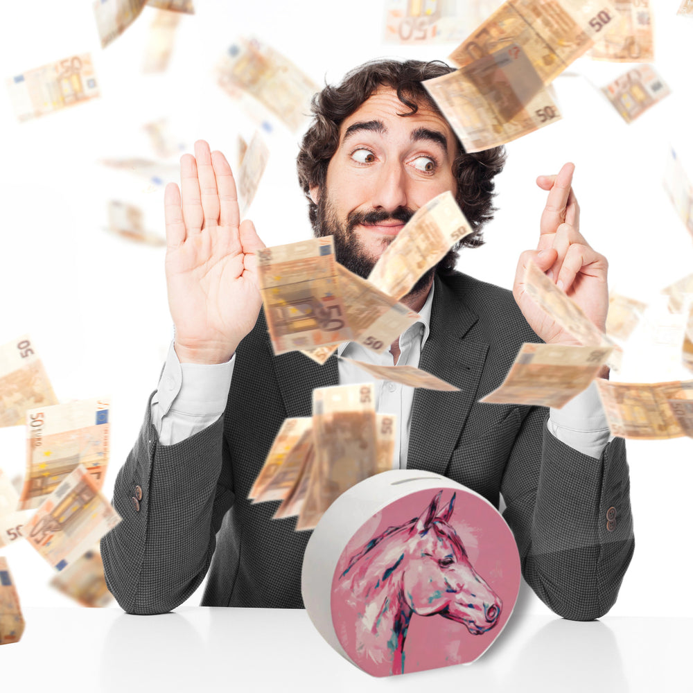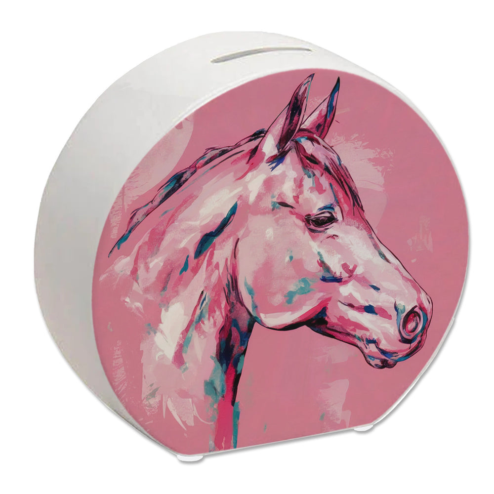 - Juhu, Pferdefans aufgepasst! Unsere Pferdekopf im Aquarellstil Spardose ist ein echtes Kunstwerk. Der zarte rosa Pinselstrich-Hintergrund lässt das friedliche Pferd strahlen. Ideal für alle, die nicht nur sparen, sondern auch ein Statement setzen wollen.