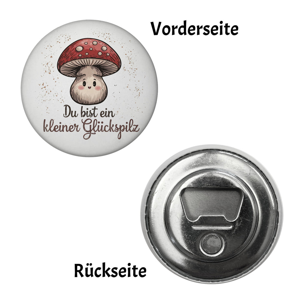 • 1x Pilz mit Gesicht Magnet rund - Glückspilz in der gewählten Ausführung