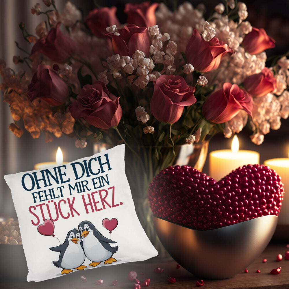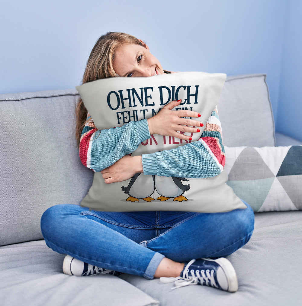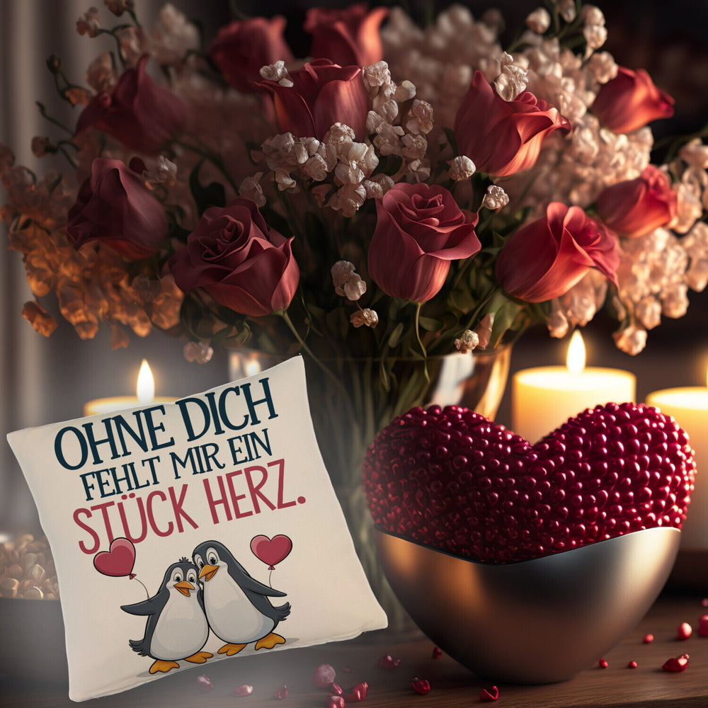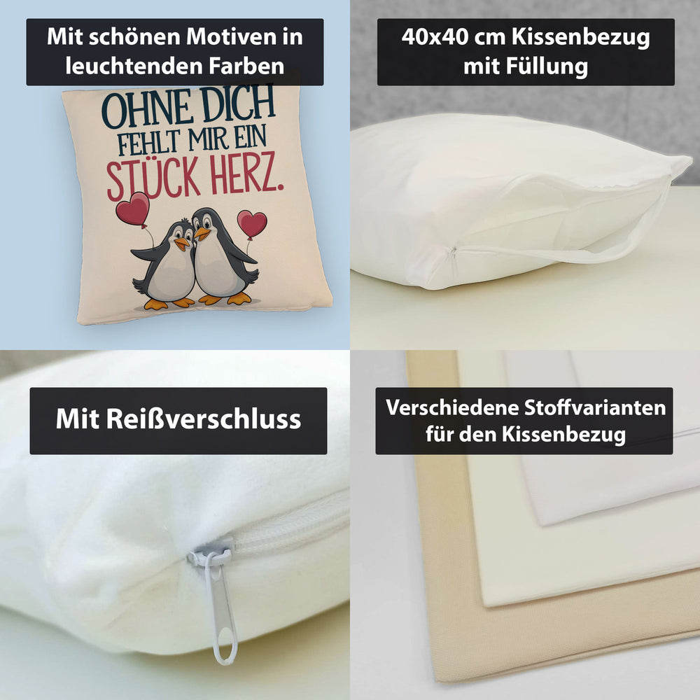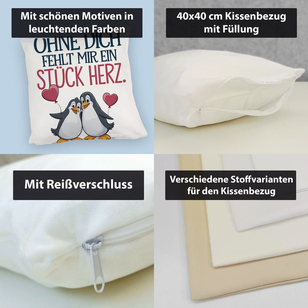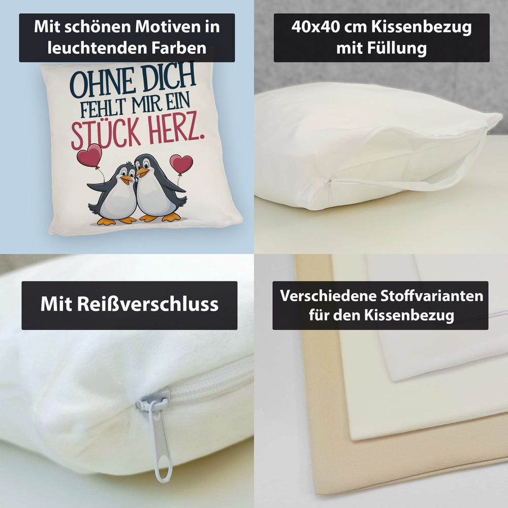 - 1x Pinguine Ohne dich fehlt ein Stück Herz Kissen in der gewählten Ausführung