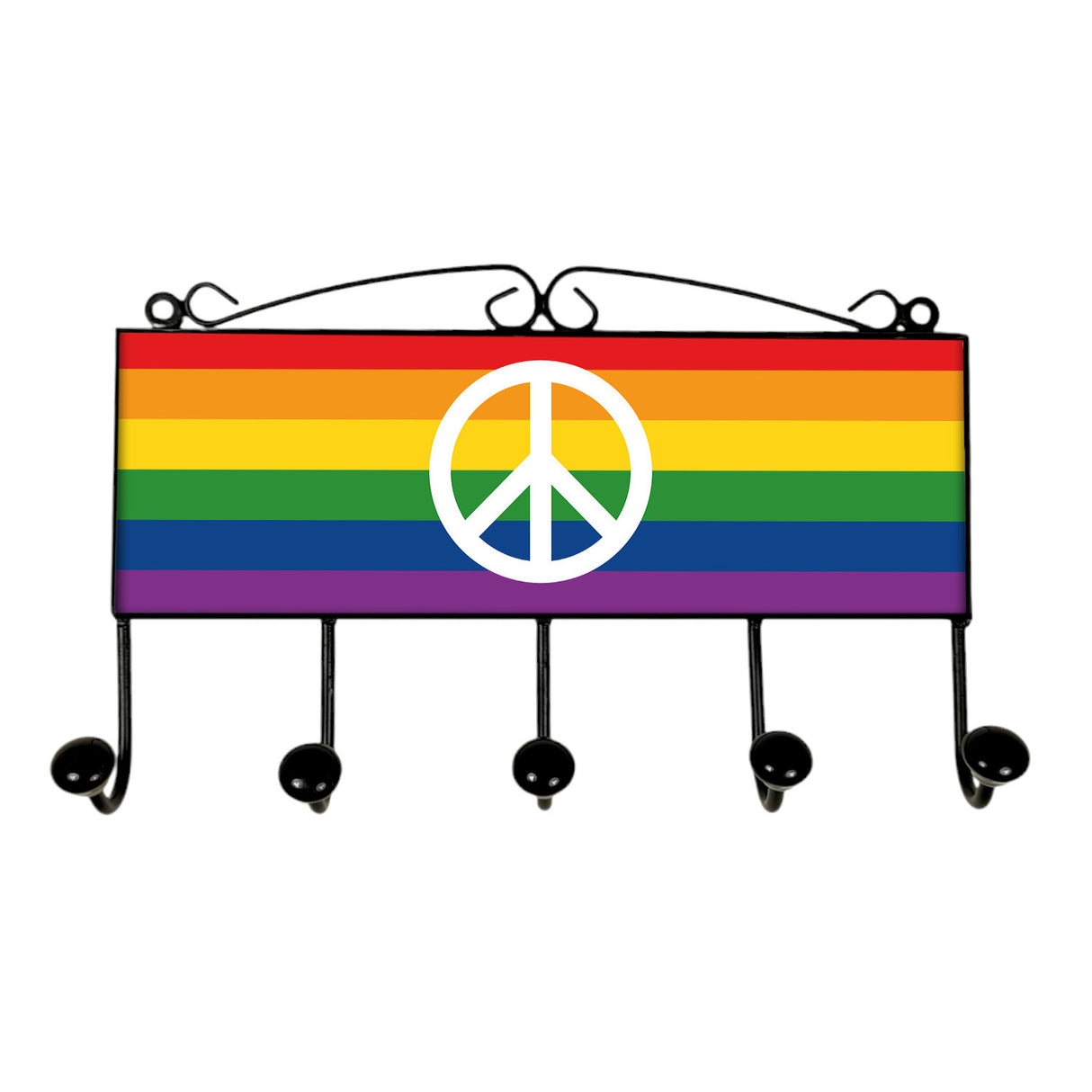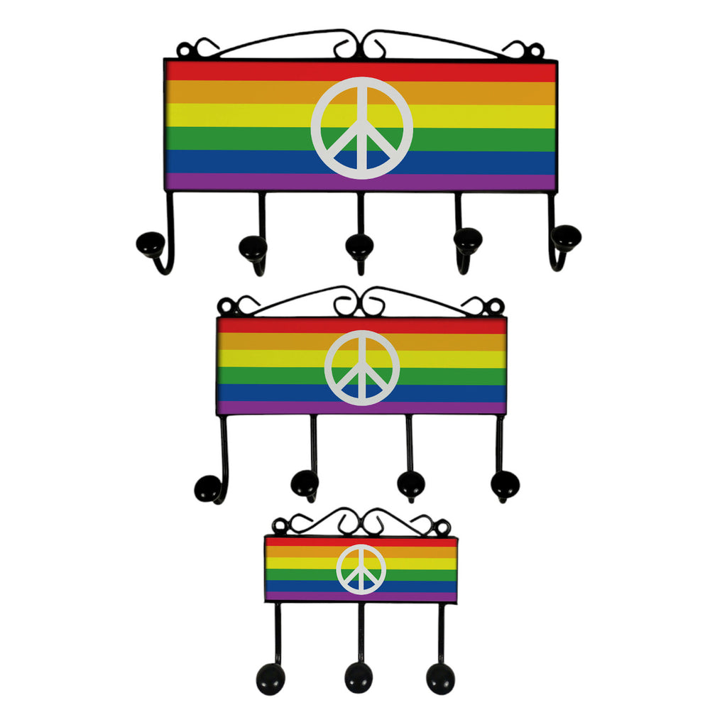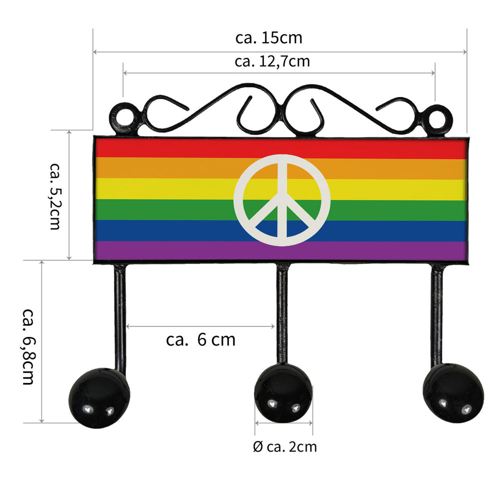 Regenbogen Friedenszeichen Kleiderhaken Leiste mit 3 Haken - Peace