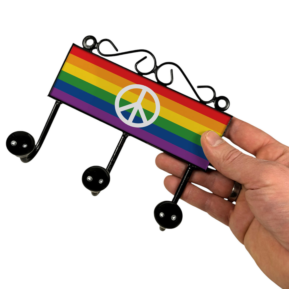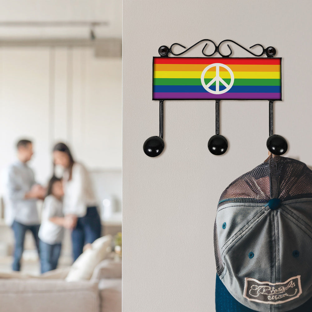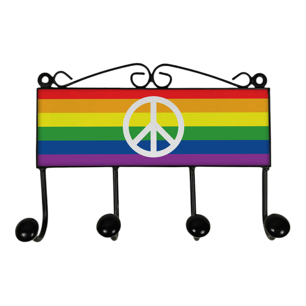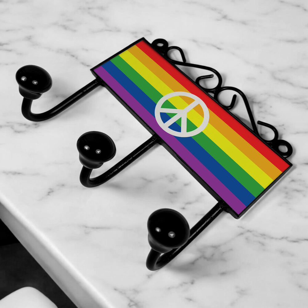 Regenbogen Friedenszeichen Kleiderhaken Leiste mit 3 Haken - Peace