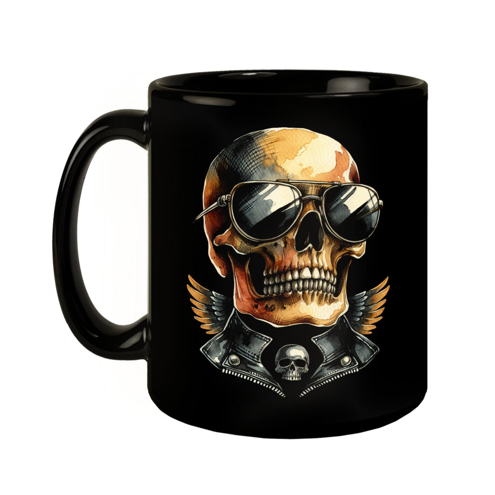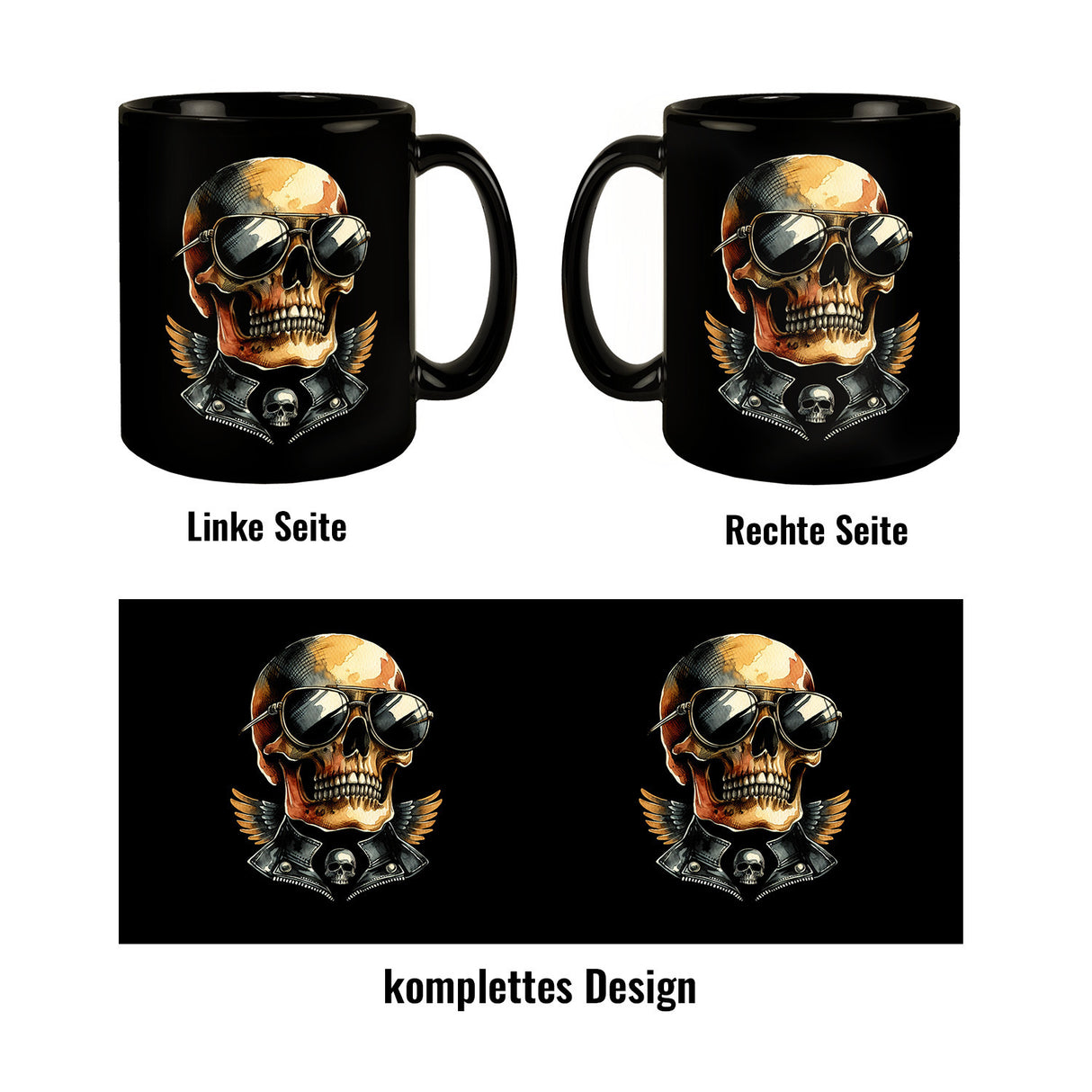 Rocker Totenkopf Tasse schwarz in Schwarz