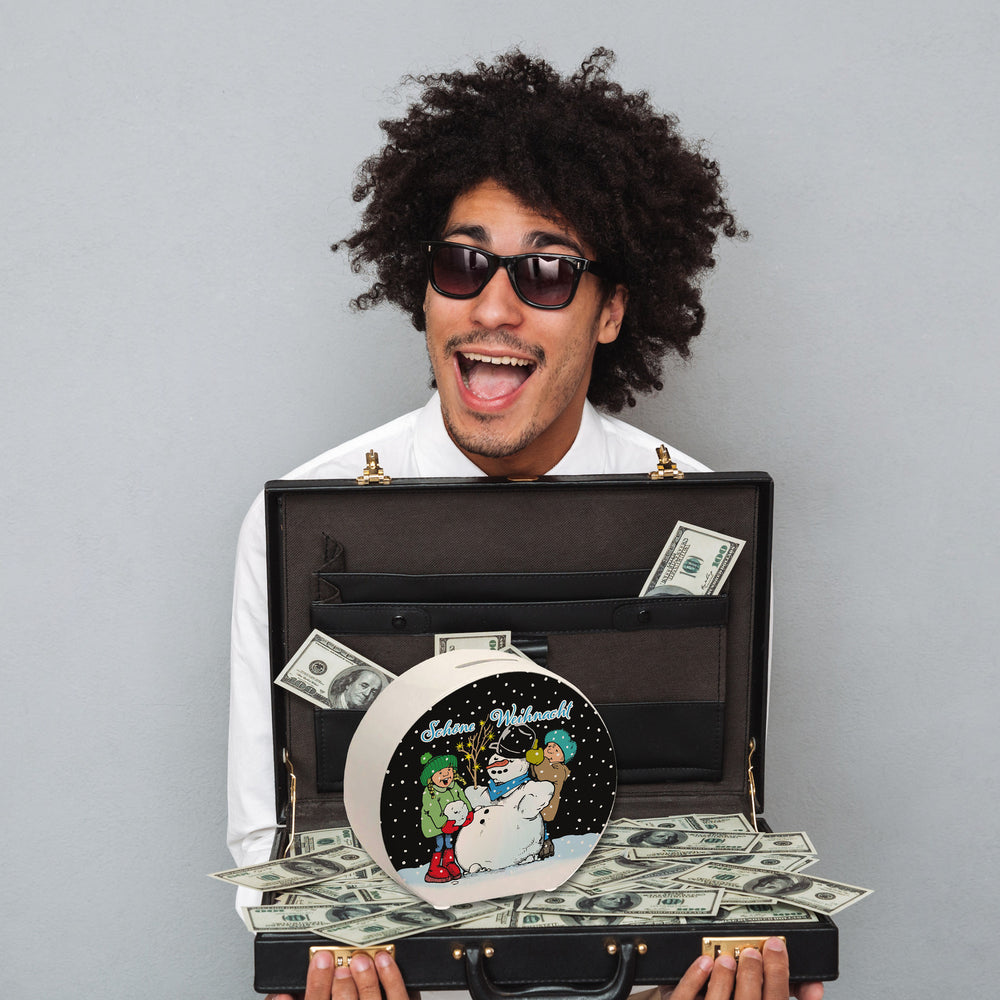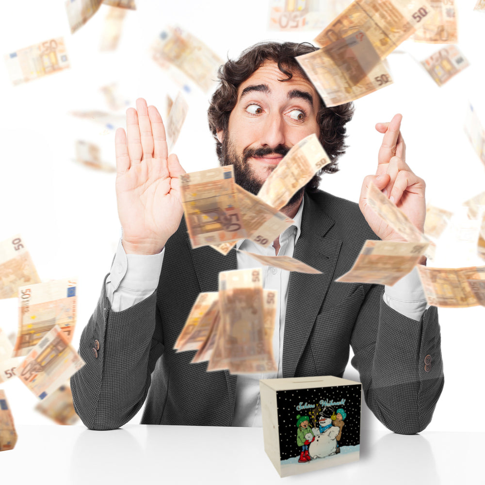 - 1x Schneemann Spardose mit Spruch: Frohe Weihnacht in der gewählten Ausführung