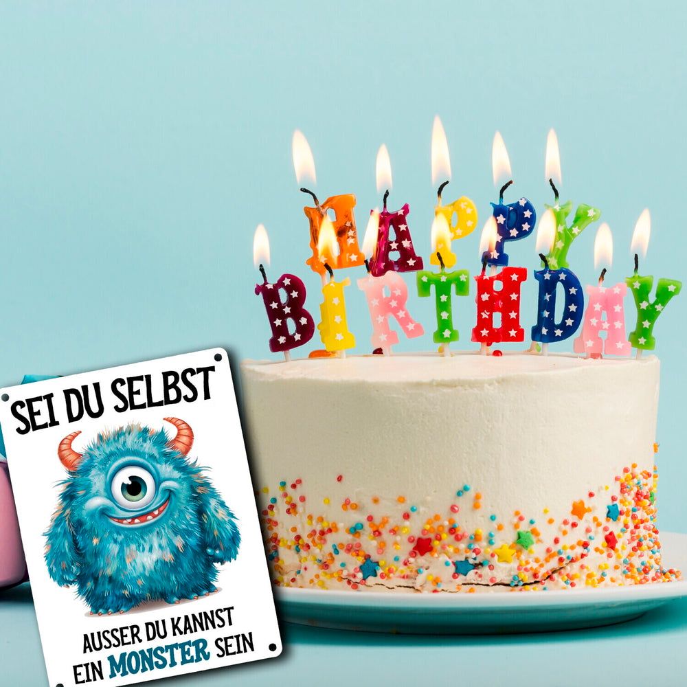 - 1x Sei du selbst außer du kannst ein Monster sein Metallschild in 15x20 cm in der gewählten Größe