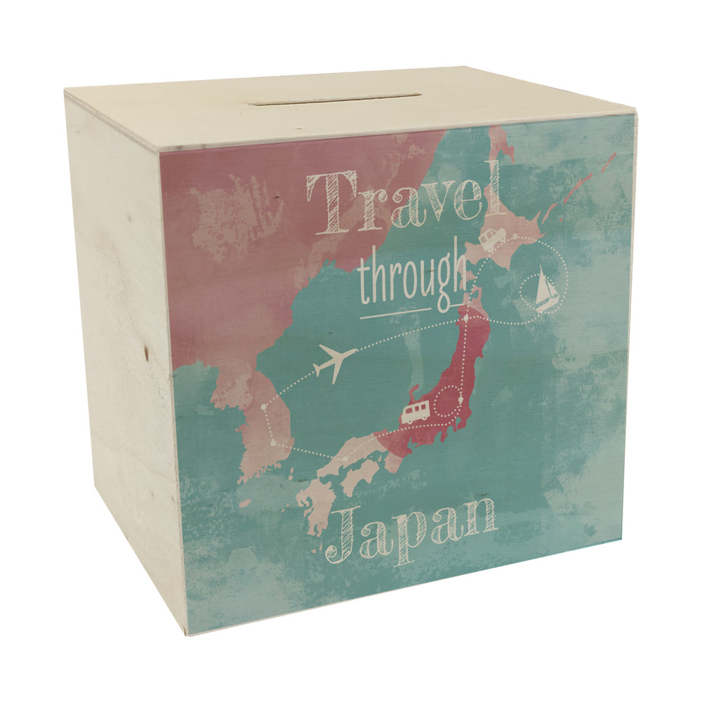 - 1x Spardose mit Japan Karte und Spruch - travel through Japan in der gewählten Ausführung