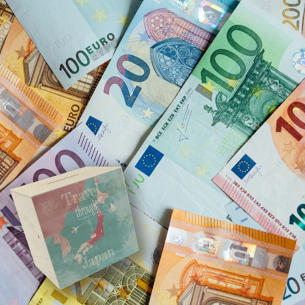 Spardose mit Europa Karte und Spruch - travel through Europa