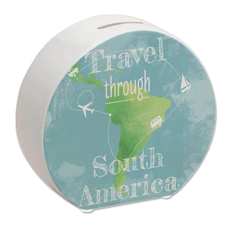 Spardose mit Südamerika Karte und Spruch - travel through Südamerika