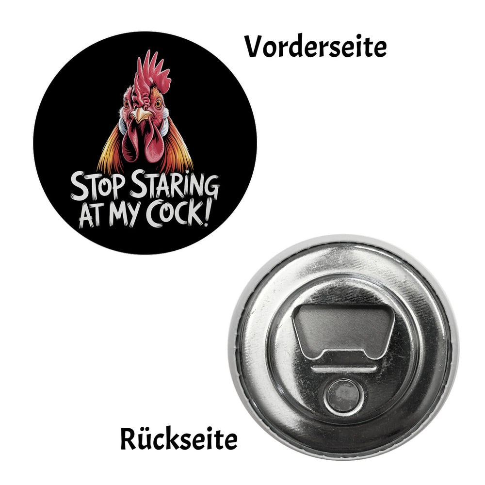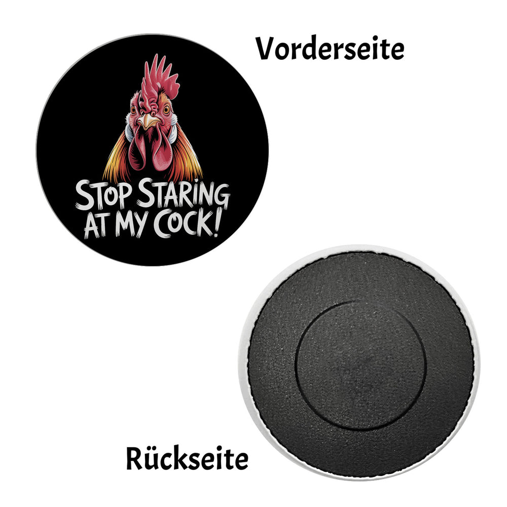 - 1x Stop staring at my cock! Magnet mit lustigem Hahn in der gewählten Ausführung