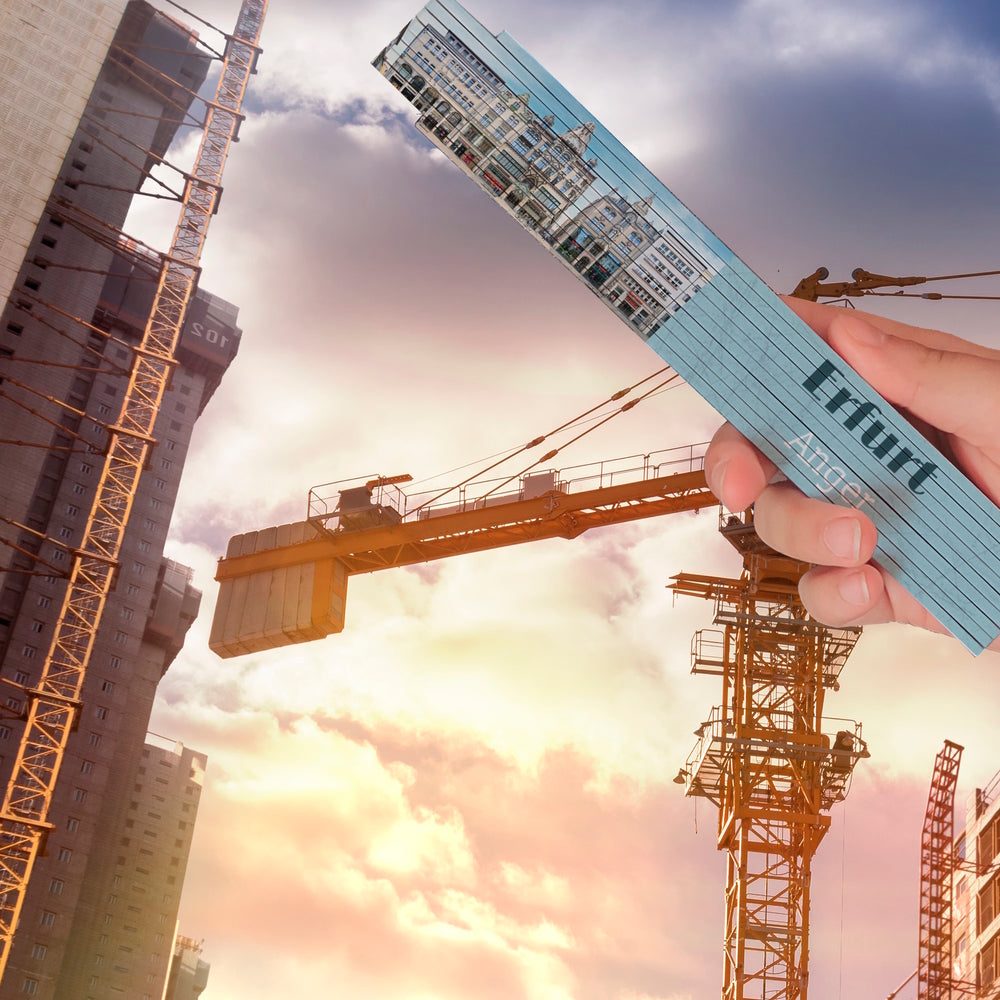 Erfurt, die thüringische Landeshauptstadt, besticht mit ihrem historisch wertvollen Stadtbild, besonders der Anger, der als Herz der Stadt gilt. Der Meterstab mit dem Motiv dieses belebten Straßenzuges ist eine Hommage an die architektonische Vielfalt, vo Hinweise: Material: Holz / 2m Gesamtlänge