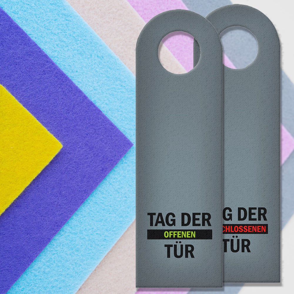 - Einzeln erhältlich oder als 3er- und 10er-Sparset. Aus hochwertigem Filz mit praktischem Loch für die Türklinke. Mit Sorgfalt in Handarbeit hergestellt in unserer Türhänger-Manufaktur in Deutschland.
