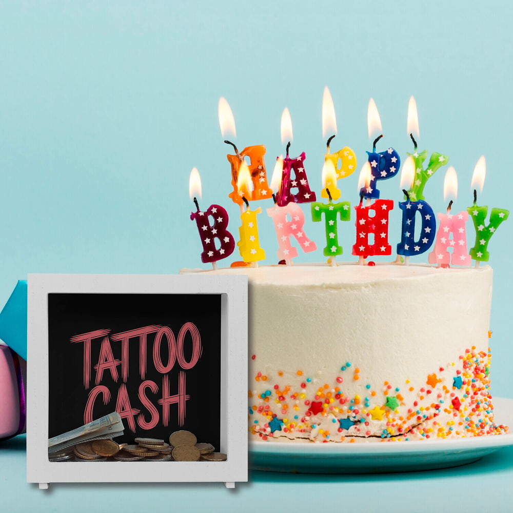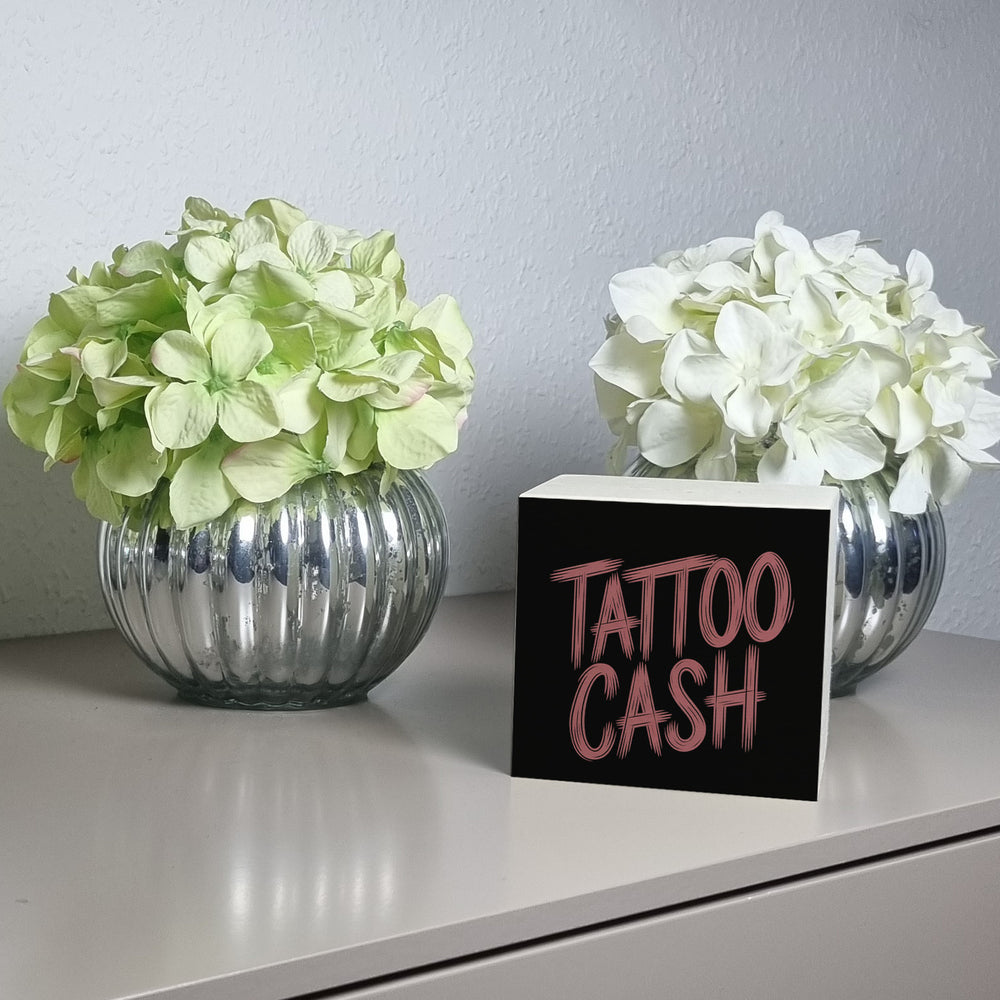 - Diese Spardose ist ein echter Hingucker! Mit einem lebendigen pinken Schriftzug auf tiefschwarzem Hintergrund zieht sie alle Blicke auf sich. Der handgeschriebene, fette Stil des "TATTOO CASH"-Schriftzugs macht sie zum idealen Accessoire für Tattoo-Fans, die gerne mit Stil sparen.